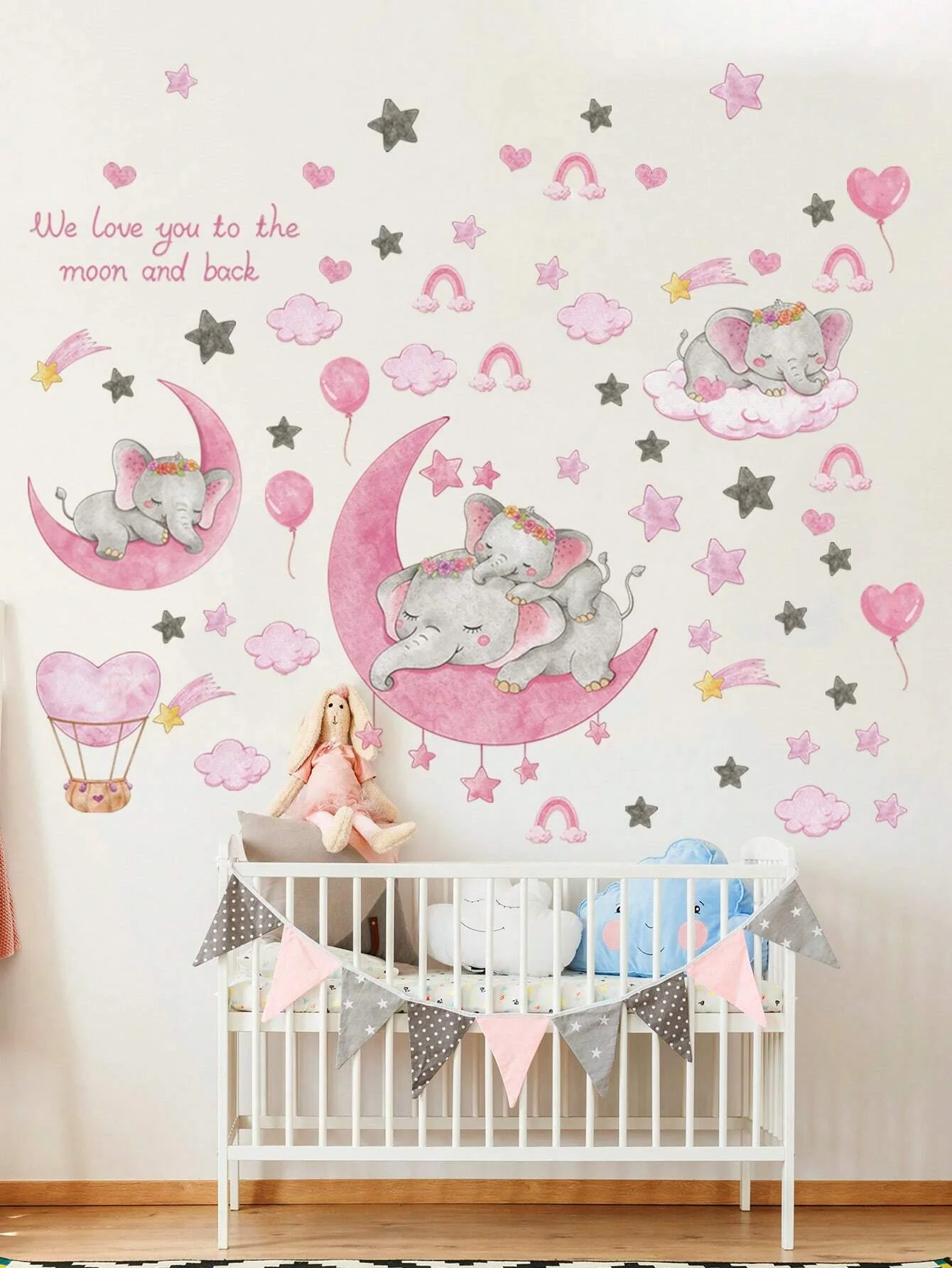 1 hoja de pegatinas de pared de elefantes lindos, pegatinas de pared