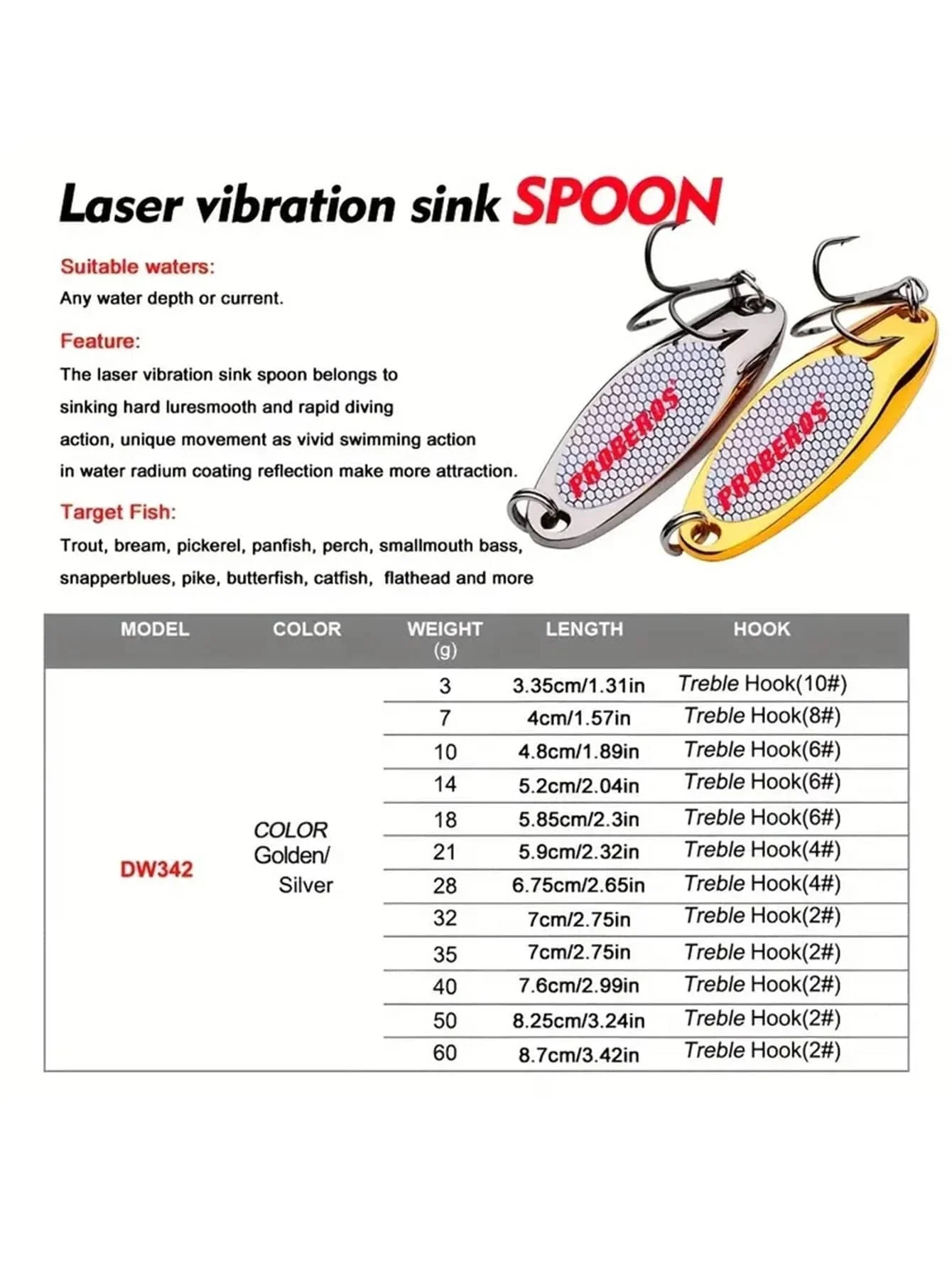 1 pieza señuelo de pesca de mar Vib con brillo metálico plateado2,99 € 1 pieza señuelo de pesca de mar Vib con brillo metálico plateado cantidad Añadir al carrito Categoría: HERRAMIENTAS Descripción Valoraciones (0) Descripción Color: PlateadoMaterial: Aleaciones de aluminio Valoraciones No hay valoraciones aún. Sé el primero en valorar “1 pieza señuelo de pesca de mar Vib con brillo metálico plateado” Cancelar la respuestaTu dirección de correo electrónico no será publicada. Los campos obligatorios están marcados con *Tu puntuación * Puntuar… Perfecto Bueno Normal No está tan mal Muy pobre Tu valoración *Nombre * Correo electrónico * Guarda mi nombre, correo electrónico y web en este navegador para la próxima vez que comente. Productos relacionados ¡Oferta! Herramienta de instalación de extracción de válvula de compresor de resorte 31,49 € El precio original era: 31,49 €.21,41 €El precio actual es: 21,41 €. Añadir al carrito ¡Oferta! Hebilla de seguridad para zapatos y ropa, herramienta de eliminación antirrobo 8,09 € El precio original era: 8,09 €.5,50 €El precio actual es: 5,50 €. Añadir al carrito ¡Oferta! Matrix- Adaptador de propano de aluminio CNC con puerto de silicona integrado 27,50 € El precio original era: 27,50 €.18,70 €El precio actual es: 18,70 €. Añadir al carrito ¡Oferta! Bisagra Placa de fijación de gabinete 10,30 € El precio original era: 10,30 €.7,00 €El precio actual es: 7,00 €. Añadir al carrito