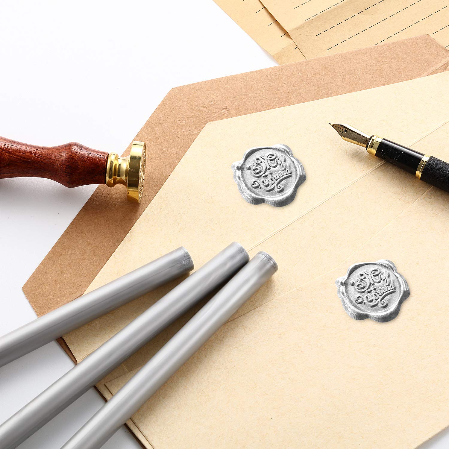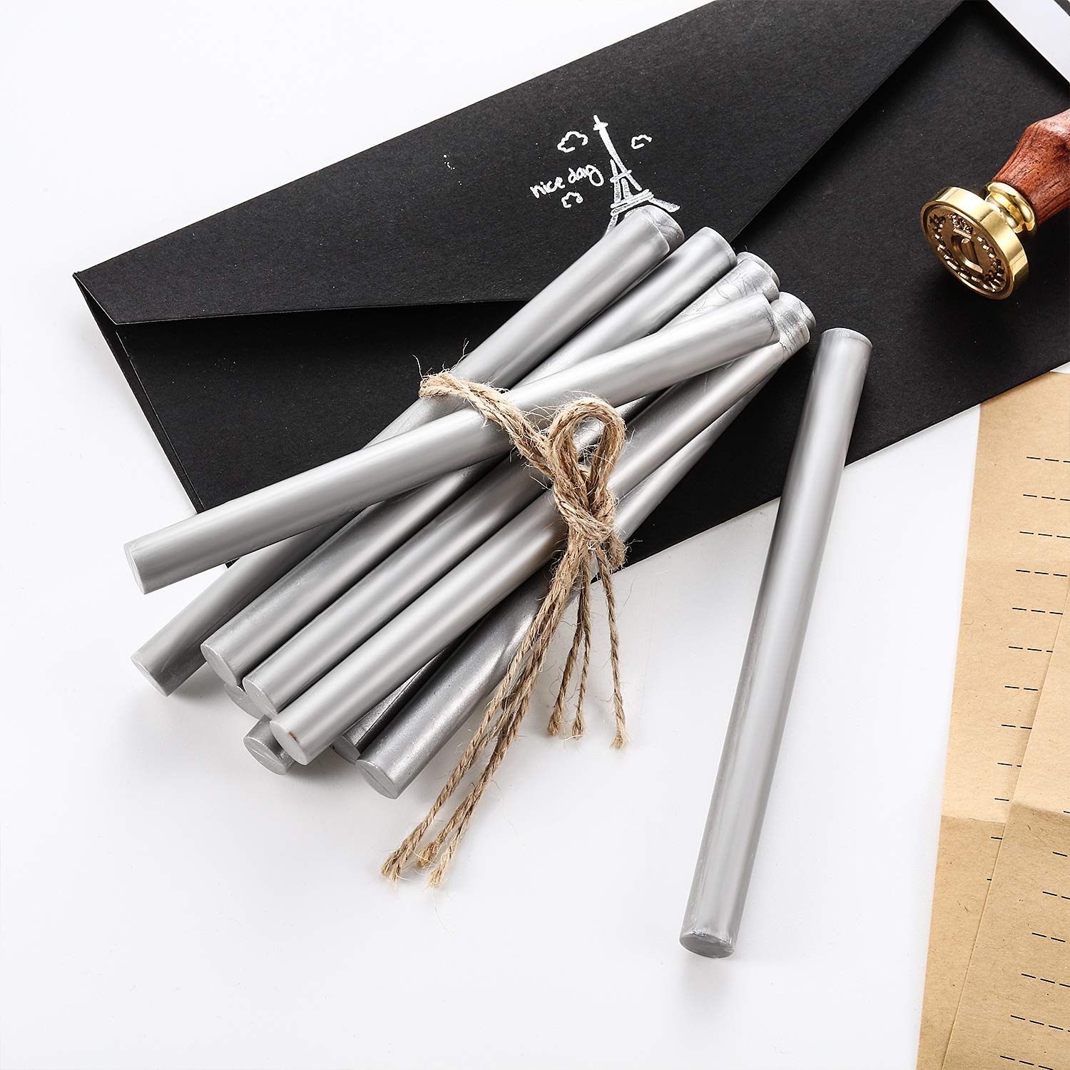 - El paquete incluye: el kit de cera para sellar incluye 15 barras de cera para sellar plateadas, cada barra puede hacer aproximadamente de 12 a 15 sellos, un paquete para hacer de 180 a 225 sellos