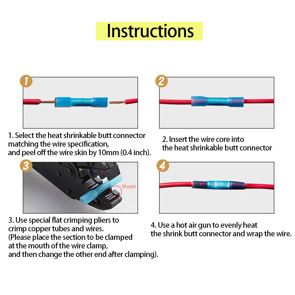 - 【Fácil de usar】Simplemente inserte el cable a conectar, engarce ambos lados con alicates de engarce y luego caliéntelo.