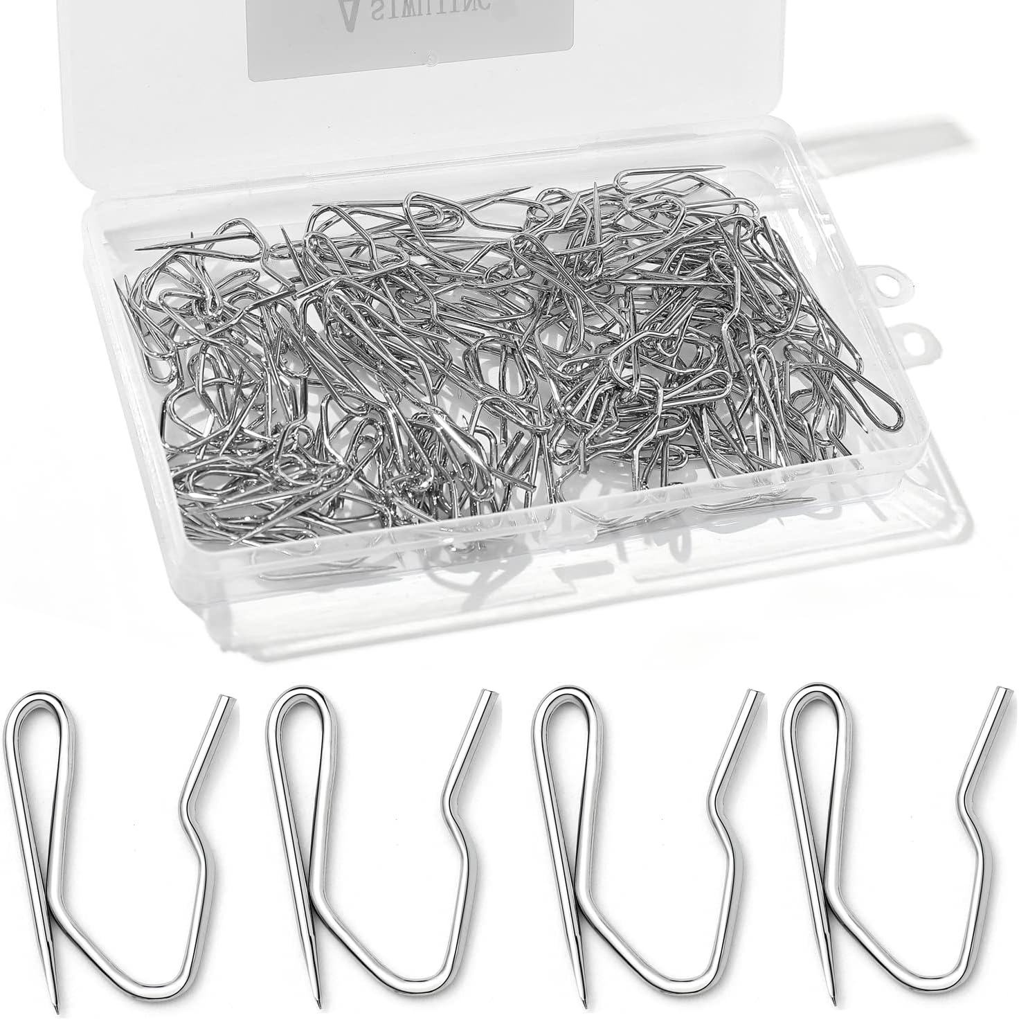 - Gancho de cortina de metal: viene con 58 ganchos de cortina de metal en una caja de almacenamiento transparente, suficiente para satisfacer sus necesidades y bueno para guardarlos sin lastimarse los dedos.