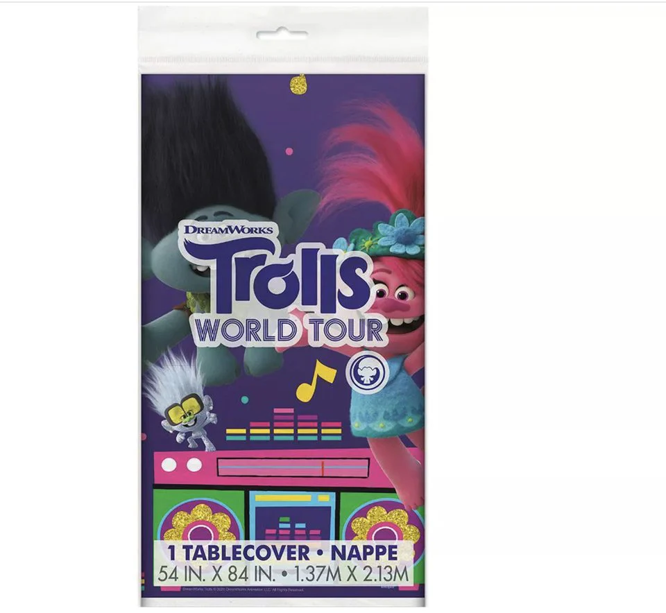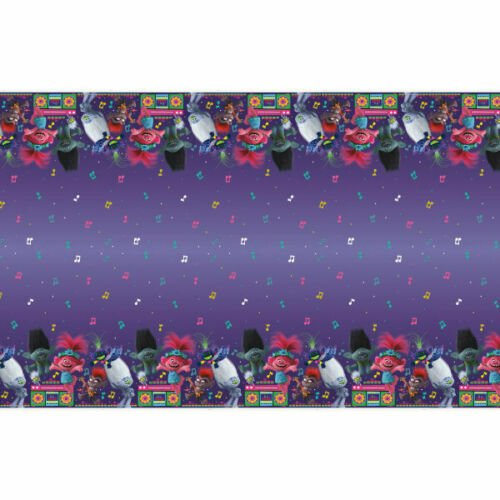- Diseño vibrante: nuestro mantel de plástico Trolls World Tour Party cuenta con todos tus personajes favoritos de la exitosa película, aportando un ambiente colorido y emocionante a la celebración de cualquier niño: la decoración de fiesta nunca ha sido tan divertida