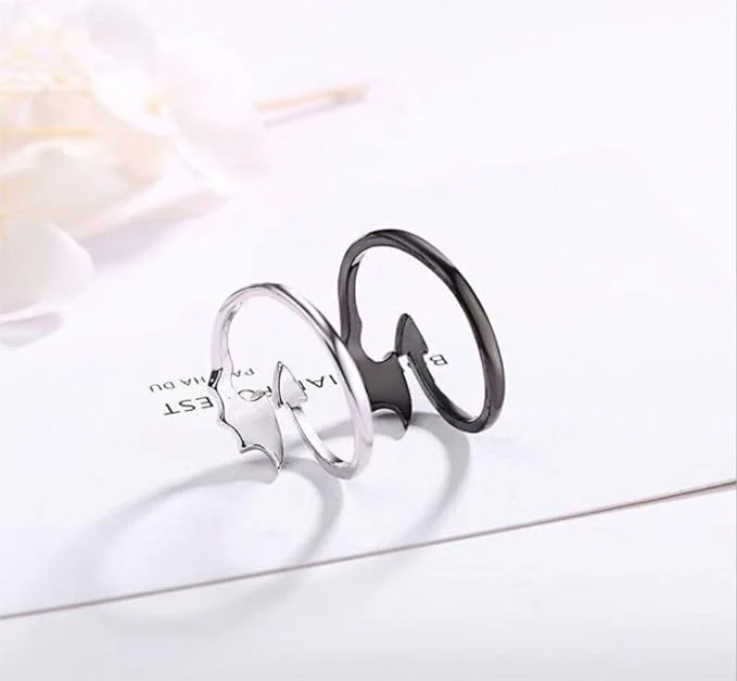 - Estilo: El tamaño del anillo puede ser ajustable, se adapta a la mayoría de los dedos y es cómodo de llevar. El blanco simboliza los ángeles, el negro simboliza el diablo. Los ángeles y los demonios son como una pareja, incluso si es un demonio, quiero tenerte en mis brazos. Esta vida, juntos entre sí, entre sí. Como anillo de compromiso, el anillo de boda de la pareja es un gran regalo, y también se puede dar a tu persona favorita.