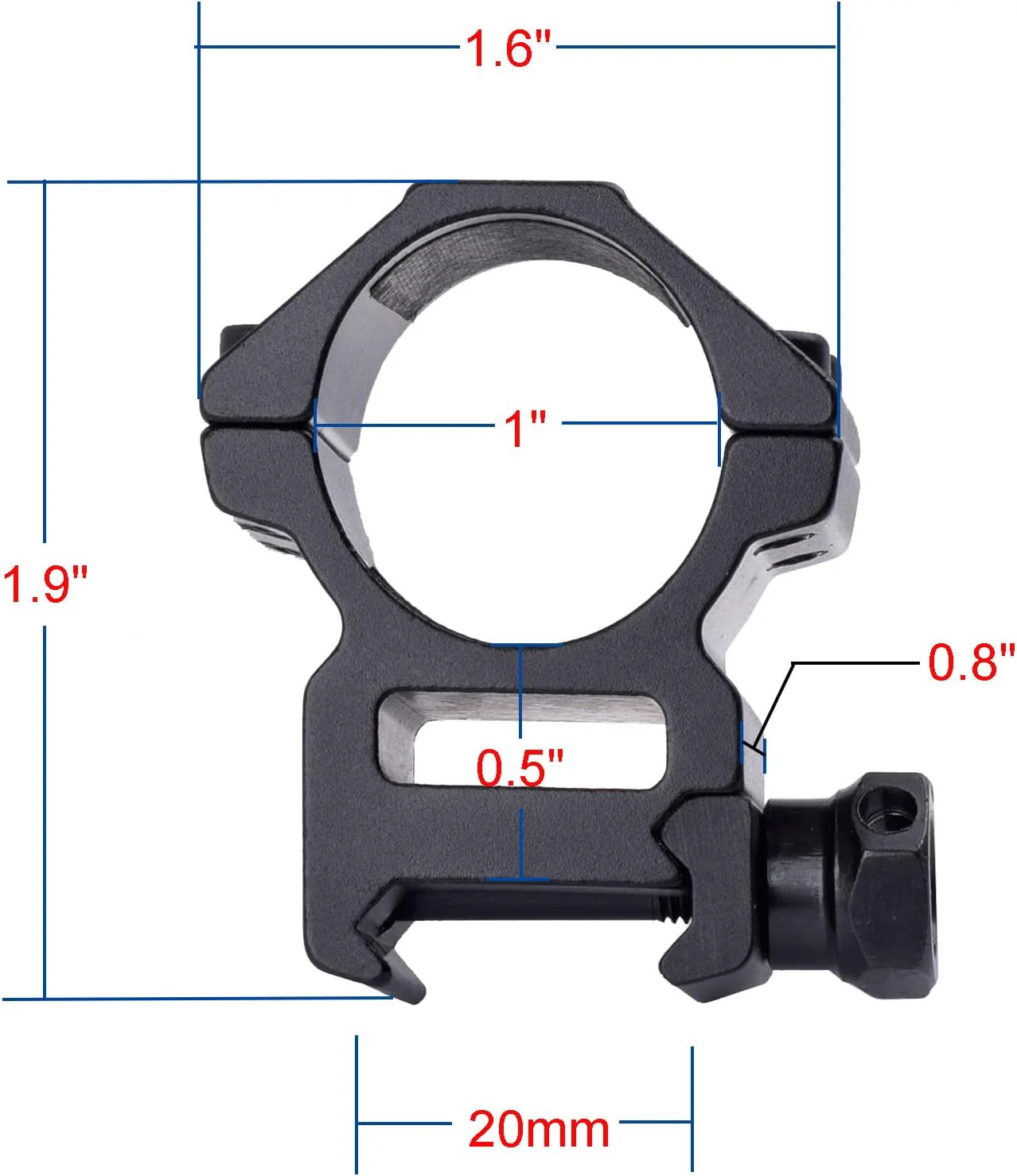 - El anillo de montaje de alcance para riel picatinny/weaver (0.787 in). El estilo transparente tiene vistas más abiertas