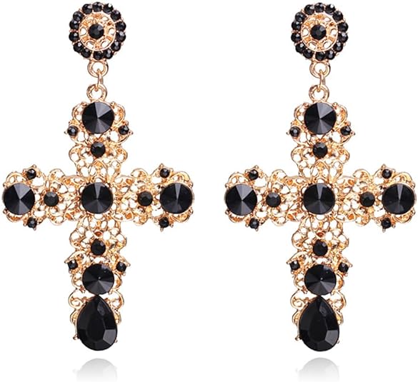 • Aretes de cruz negra para mujer: los aretes de cruz negra vintage están hechos de estilo victoriano, los colgantes de cruz grandes y gruesos son una gran opción para el uso diario.