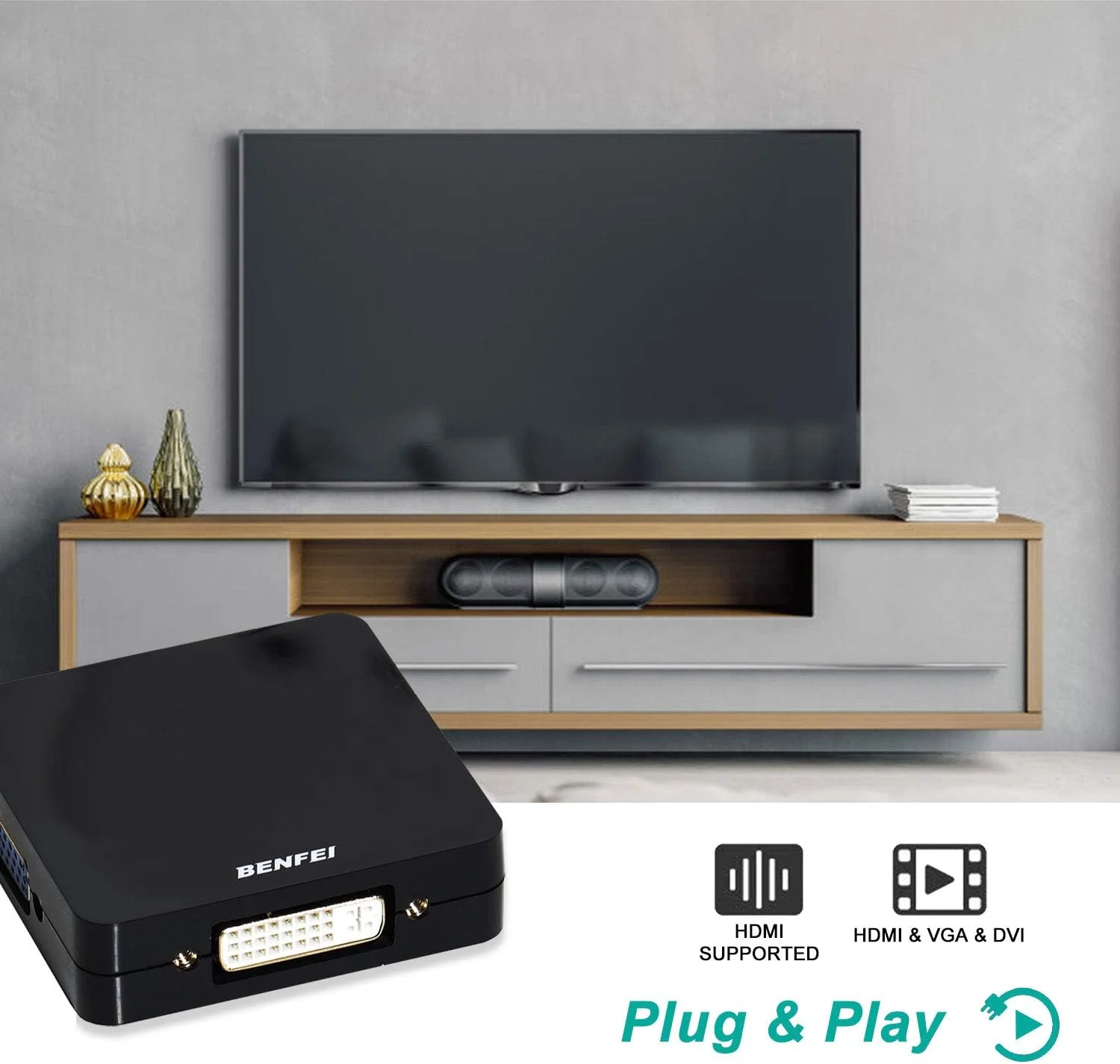 - El adaptador Benfei Mini DisplayPort a HDMI DVI VGA conecta una computadora o MacBook compatible con puerto Mini DisplayPort/Mini DP/Thunderbolt 2.0 a un HDTV, monitor o proyector con puerto HDMI/VGA/DVI. Se requiere un cable HDMI/VGA/VGA independiente (se vende por separado). NOTAS IMPORTANTES: Los puertos HDMI, VGA y DVI no se pueden utilizar simultáneamente. Sólo se podía utilizar uno de ellos a la vez.