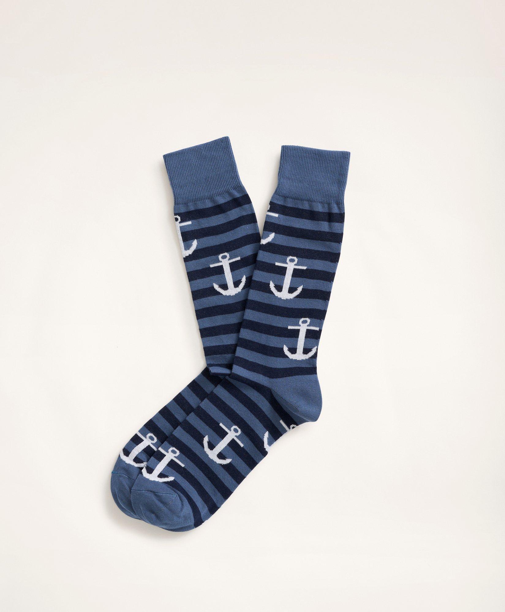 Nuestros calcetines son conocidos por su excepcional comodidad y durabilidad. Tejido con spandex para un ajuste óptimo. Calcetines de rayas con motivo de ancla.