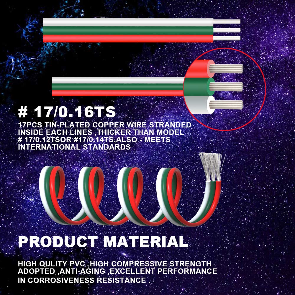 - ESTÁNDAR: Cable de extensión LED de 65,6 pies (20 metros) de calibre 22, calibre 22 AWG, 17 piezas de cobre estañado en cada línea.