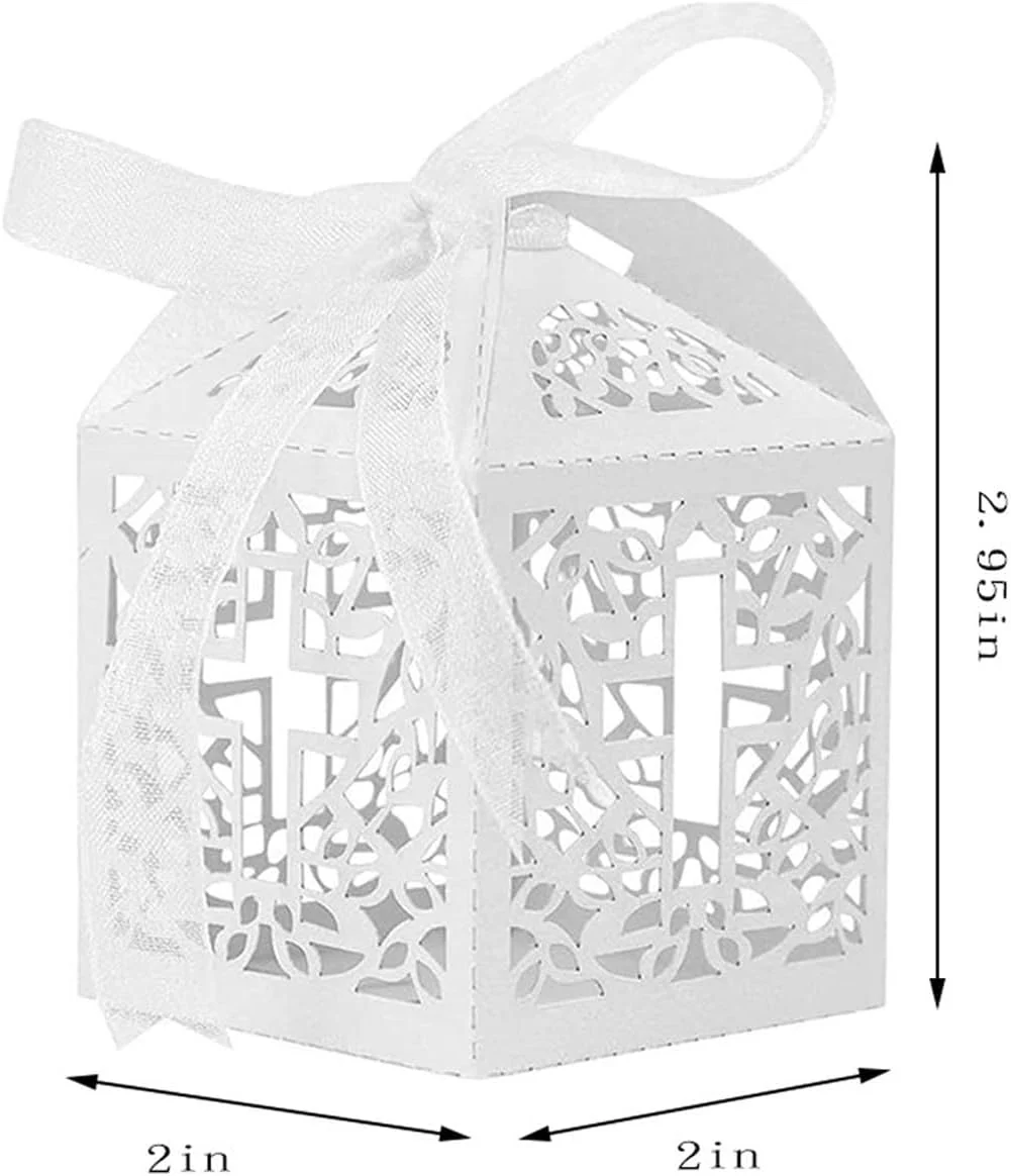 - Material duradero: esta caja de caramelos de boda ahuecada en cruz está hecha de papel de alta calidad, lo que garantiza la robustez y durabilidad de la caja.