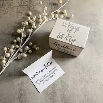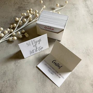 Este desafío de 30 días está diseñado para ayudarte a ordenar tu mente para que puedas empezar de nuevo. Sé amable contigo mismo y traslada los pensamientos negativos de tu cabeza y tu corazón a las cartas. Colocarlos en un frasco (elevar el frasco de vidrio con vibración sería una gran idea), una caja o incluso quemarlos para dejarlos ir.