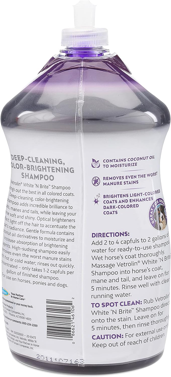 El champú Farnam Vetrolin White ‘N Brite es una excelente opción para limpiar a fondo el pelaje de tu caballo o perro y mejorar su brillo y color. Con una fórmula de limpieza profunda, este champú eliminará eficazmente la suciedad y los residuos, dejando un pelaje luminoso y radiante. También es suave y seguro para la piel, manteniendo a tu mascota cómoda y saludable. Con una botella de 32 onzas, obtendrás una limpieza de alta calidad y duradera.