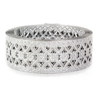- Cinta de metal chapada en zinc con desplazamiento de flores (1 1/4″ x 3 yardas)