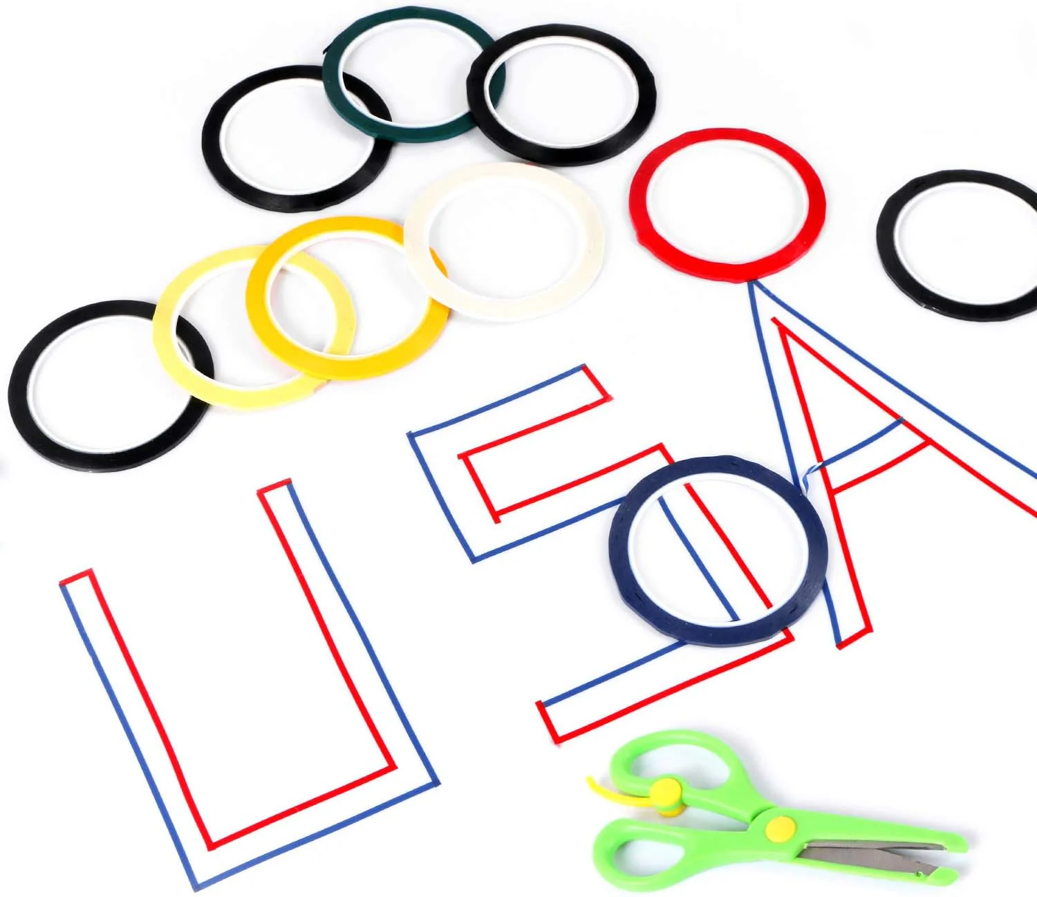 - ✎ 【Fácil de usar】Esta cinta de rayas no tiene respaldo de papel, fácil de aplicar y quitar y no deja residuos en la superficie. Tijeras con mango recto para un corte suave y eficiente. Puedes cortar a la longitud adecuada con tijeras.