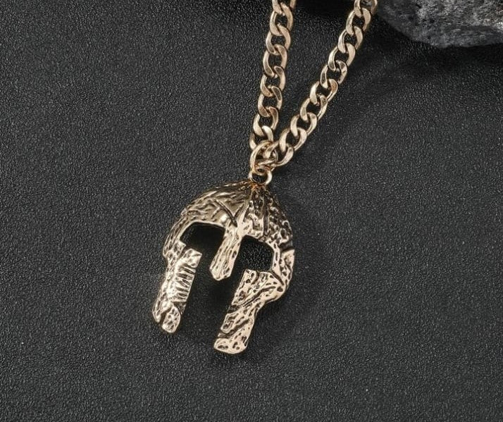 Diseño: cadena cubana + collar con colgante de casco de Esparta, gran regalo para Halloween, Navidad, día de San Valentín, día de Acción de Gracias, cumpleaños, aniversario.