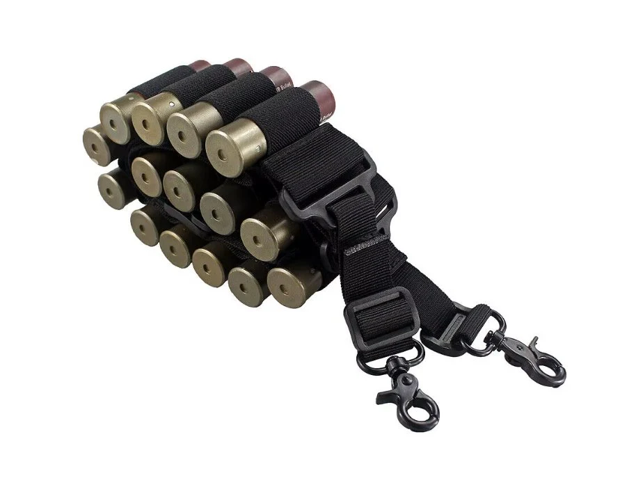 Totalmente ajustable y soporta hasta 15 cartuchos adicionales de escopeta (Calibre 12 o 20).