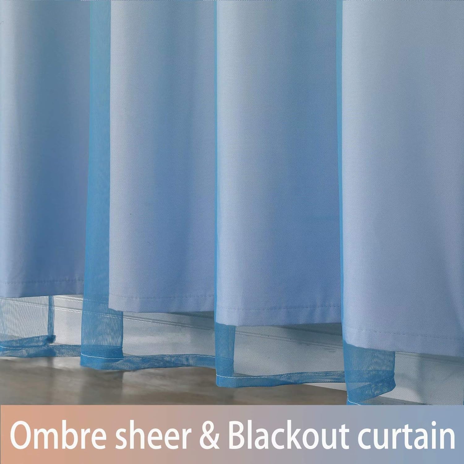 • MEZCLA Y COMBINA: la capa de gasa sombreada de 2 colores cubierta con una cortina opaca presenta un aspecto elegante y vívido de ensueño para iluminar cualquier decoración del hogar. Las cortinas opacas proporcionan suficiente oscuridad, mientras que las cortinas transparentes sombrías son transpirables y decorativas.