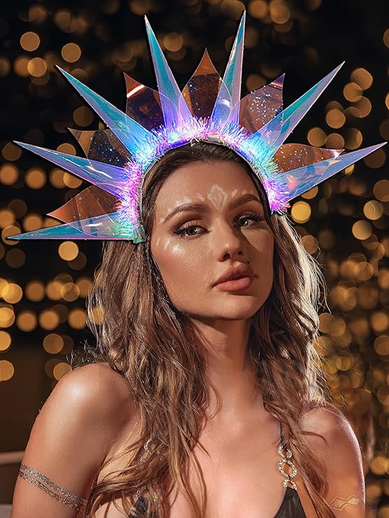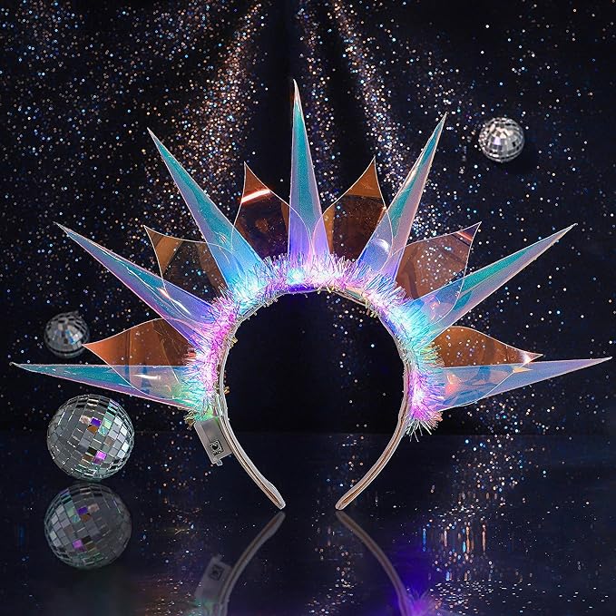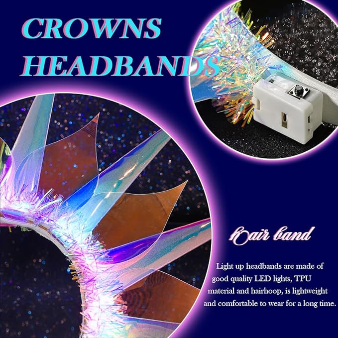 Diademas iluminadas hechas de aro de pelo de alta calidad y plástico, con diseño de luz LED, cuando la luz está encendida, el accesorio para el cabello reflejará colores similares al arco iris, cambiando con cada ángulo que te muevas, brillante y deslumbrante.