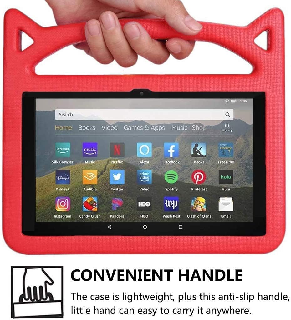 - Mango grande diseñado para un agarre cómodo con una mano (adecuado para manos de niños pequeños) para facilitar su transporte y transporte, puede sostenerse sobre sus propios pies en la parte posterior. Es un regalo ideal para que los niños protejan su tableta de 8 pulgadas.