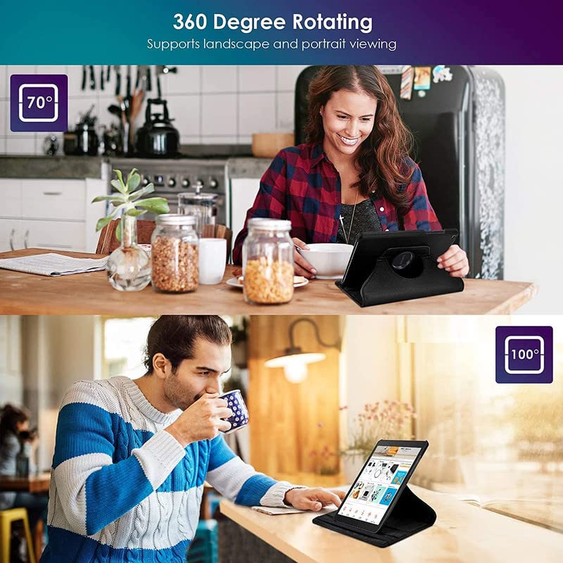 - [Rotación de 360 grados]: el giro de 360 grados permite que la tableta gire de forma flexible tanto vertical como horizontalmente mientras está en la funda. Diseño Snap-n-Roll: se encaja fácilmente en el soporte (simplemente encaje primero en el lado izquierdo y luego en el lado derecho).