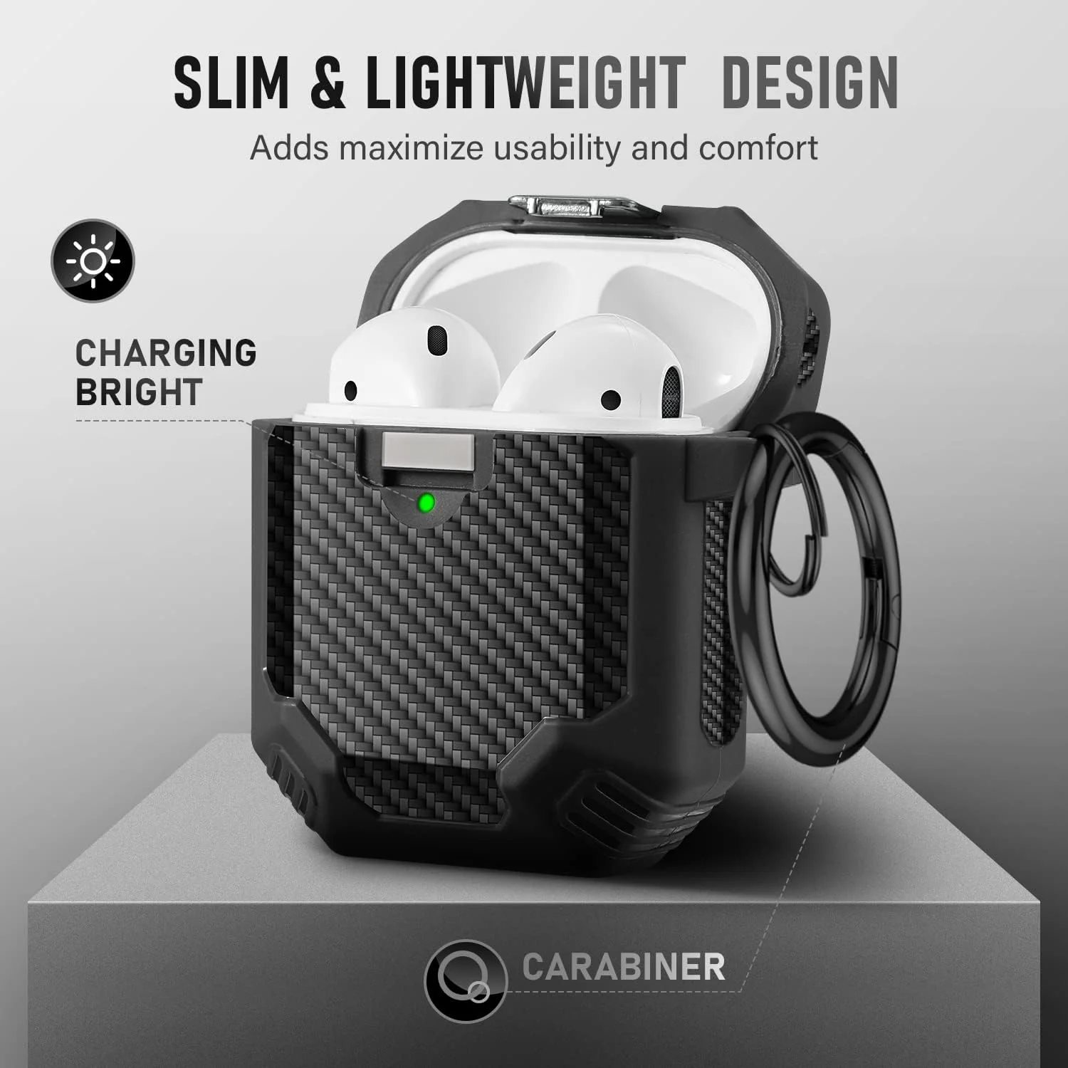 1 funda a prueba de golpes para Airpods de 1ª y 2ª generación, 1 mosquetón de metal