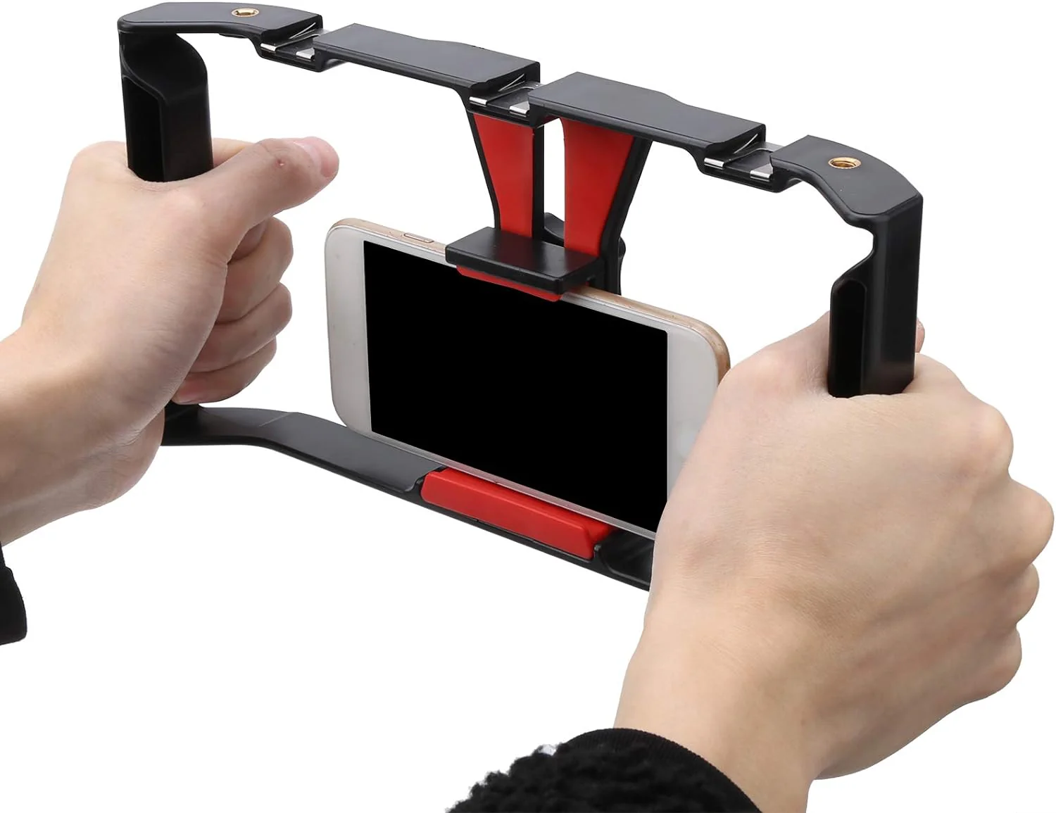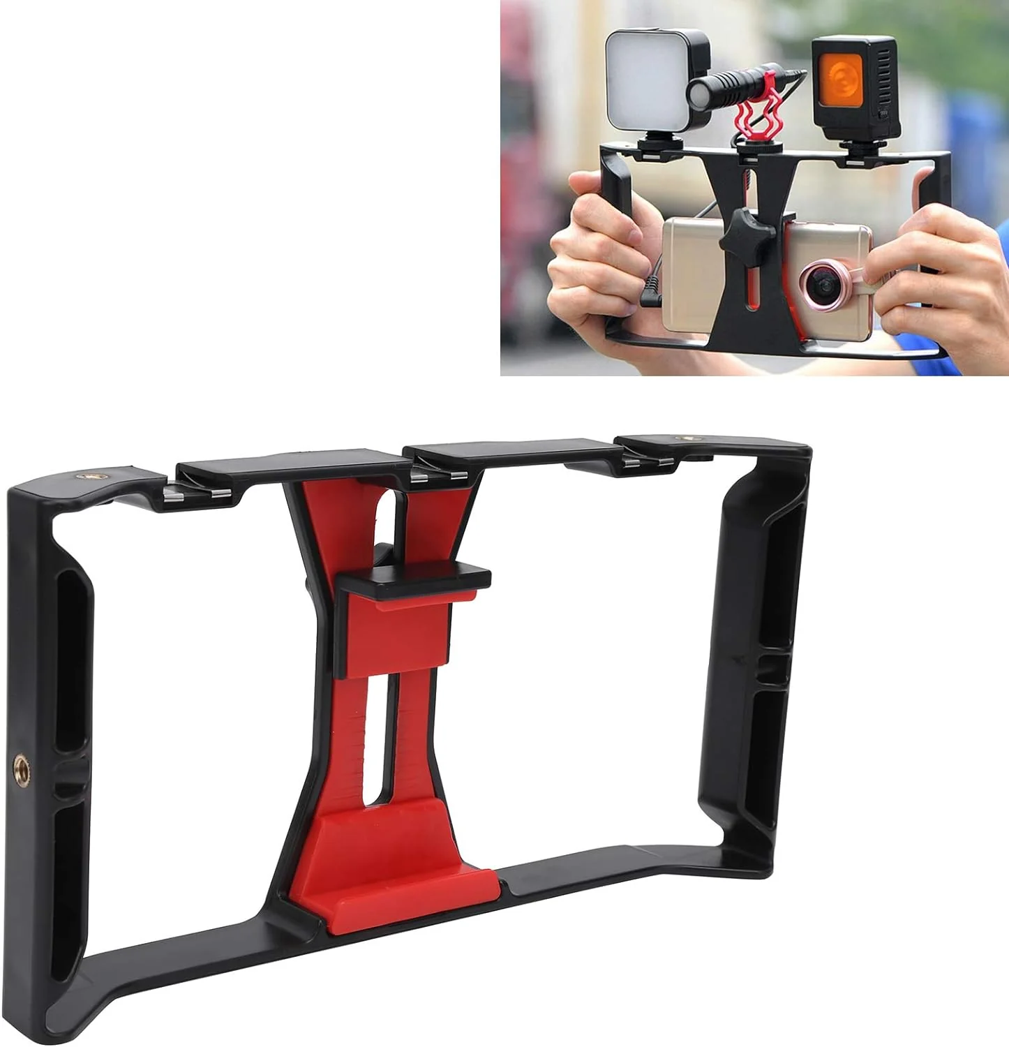 - [La mejor plataforma para el fabricante de videos telefónicos] Hay muchos orificios para tornillos de 1/4 de pulgada y una base de zapata múltiple, es fácil cambiar entre horizontal y vertical para disparar. Puede montar luces LED y micrófono de video en la jaula de la cámara de mano. Una herramienta fantástica para los realizadores de videos móviles, los realizadores de teléfonos.