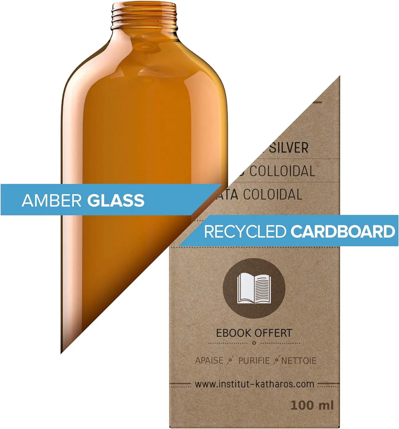 - ✅AGUA DE EXTREMA PUREZA ✅ Elegimos el agua más pura disponible: agua ultrapura tipo 1. Se utiliza para las operaciones de laboratorio más críticas, como en biología molecular. Cabe señalar que la mayoría de las soluciones de plata coloidal contienen agua ultrapura de tipo 2 o 3, que puede contener hasta 100 veces más bacterias que el agua ultrapura de tipo 1. Para mantener este alto nivel de pureza, hemos optado por utilizar botellas de vidrio de color ámbar.