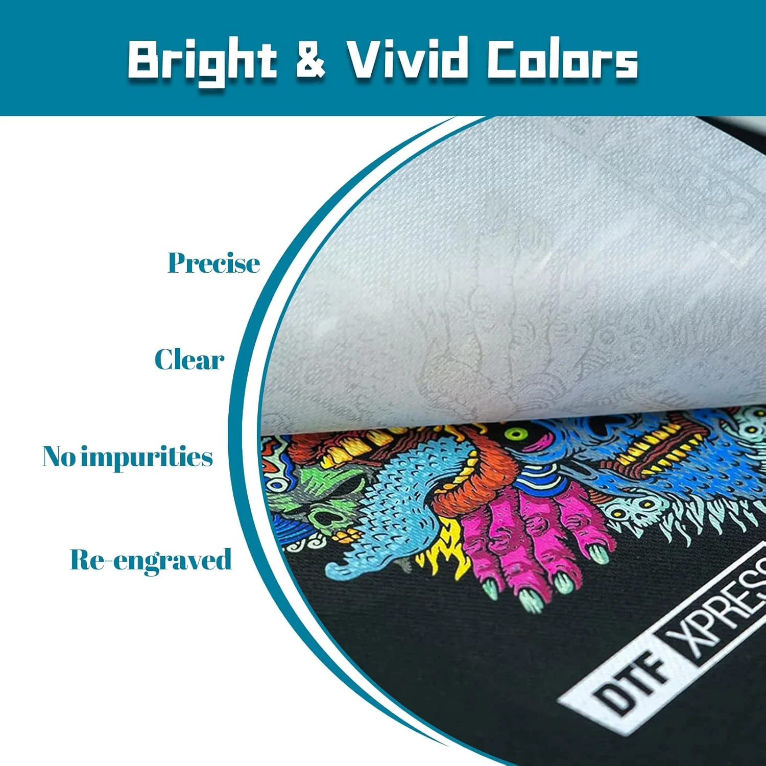 - Colores brillantes y vivos El polvo DTF se adhiere a la tinta en lugar de a la película, lo que proporciona colores brillantes y vivos. El polvo termofusible DTF para tintas y películas de transferencia DTF es un material de TPU que es suave al tacto y elástico y proporciona una alta adherencia.