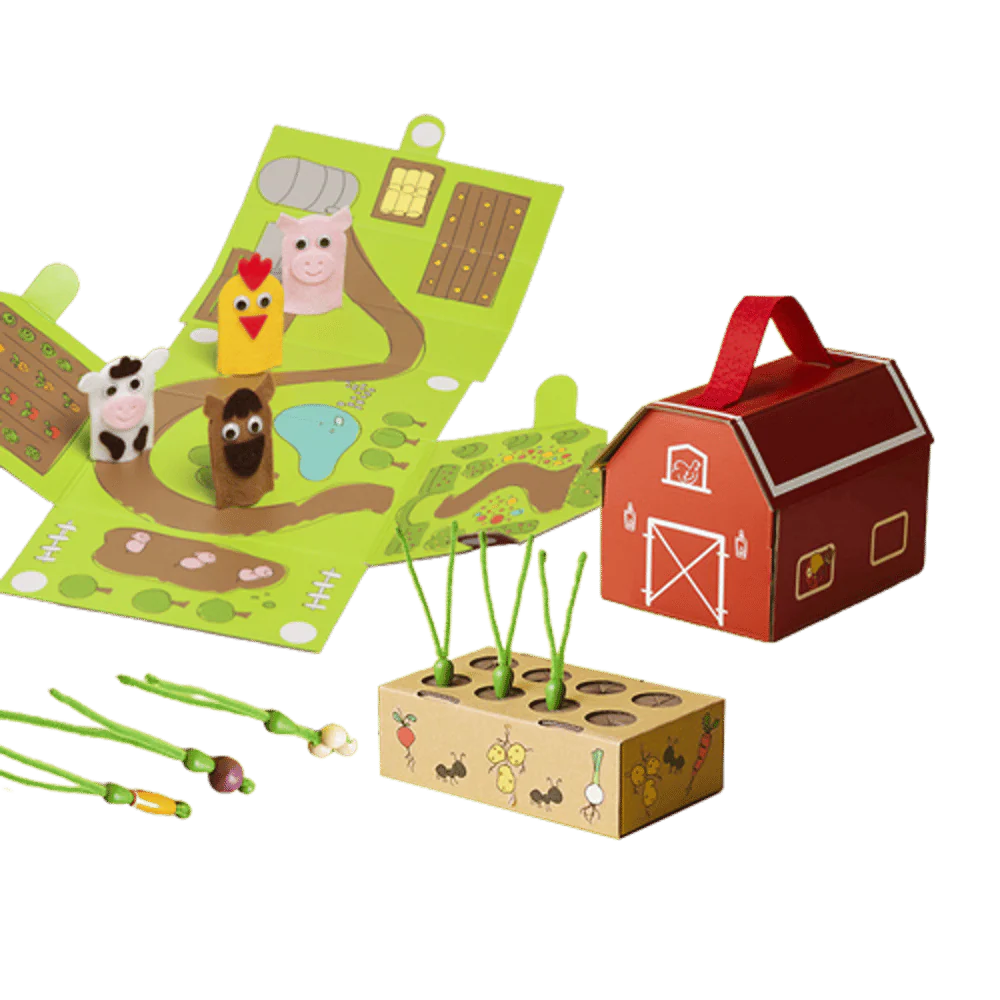 Todo lo necesario, desde los materiales hasta las instrucciones ilustradas, está incluido, junto con Imagine!, una revista extra para jugar y aprender para que los niños aprendan más sobre la agricultura.