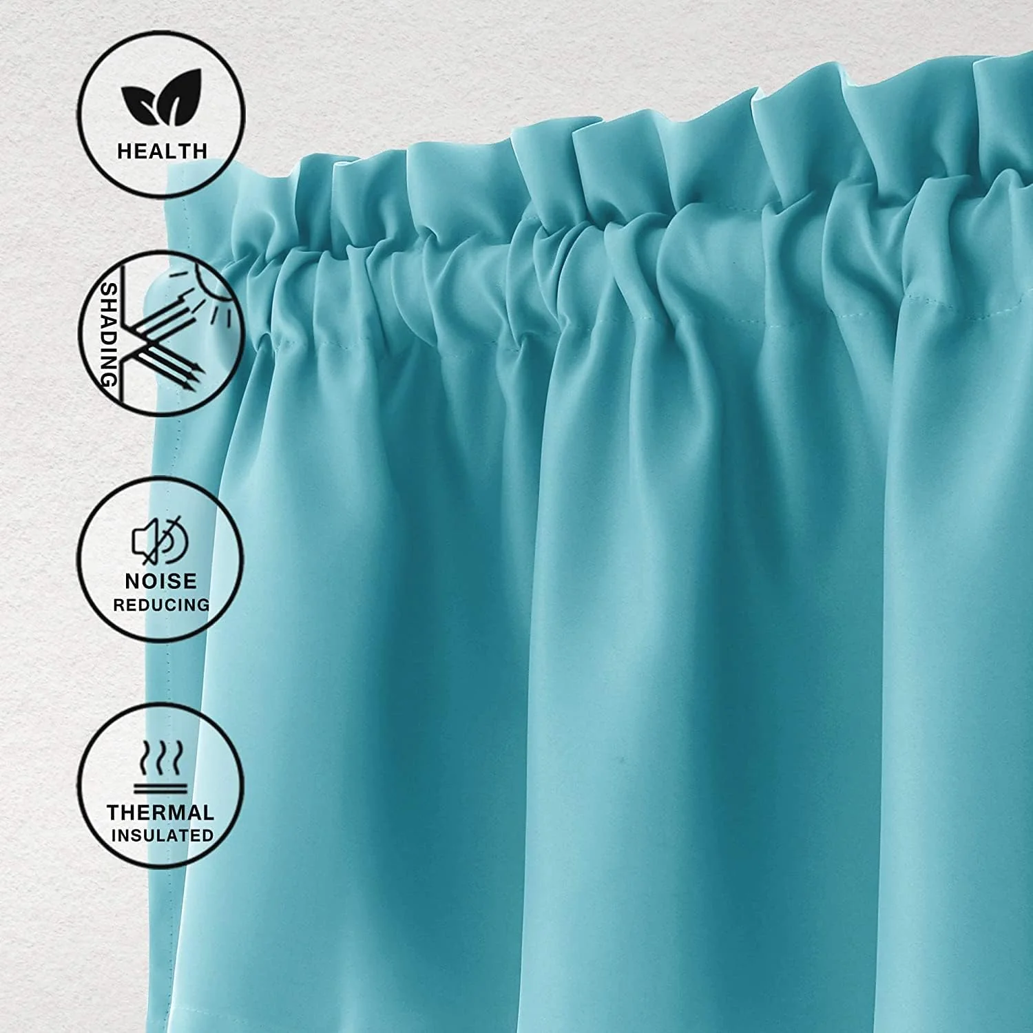 - TELAS DE ALTA CALIDAD: Hechas de 100% poliéster de alta densidad, nuestras cortinas opacas son muy suaves, duraderas y libres de químicos. 1 panel por paquete y cada cortina mide 52″ de ancho x 18″ de largo. Las cenefas de 3″ encajan perfectamente en cualquier poste estándar.