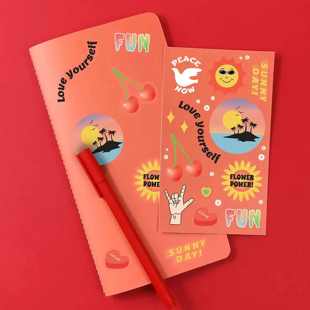 Tamaño: 11 x 21 cm (cuaderno), 9×17,4 cm (pegatina)