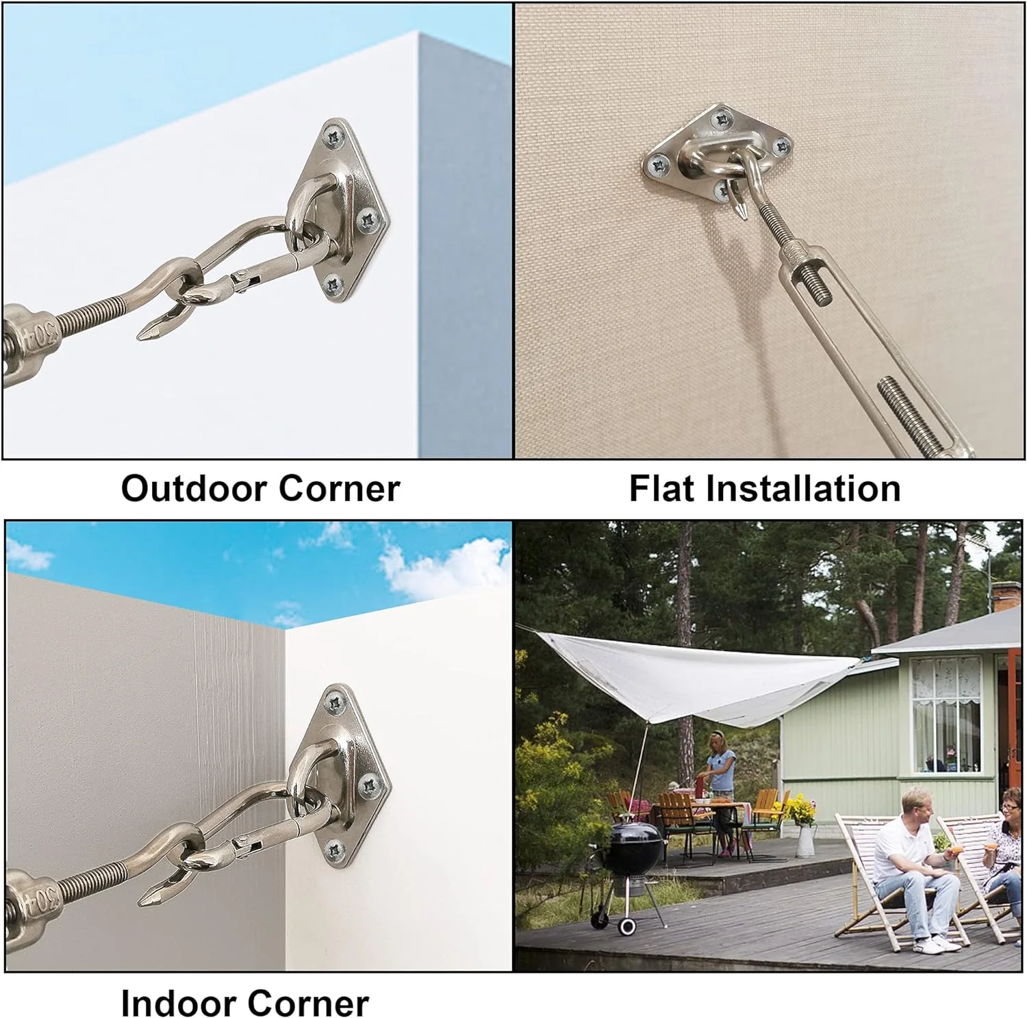 - La mejor calidad: nuestro kit de herrajes para velas de sombra está fabricado con acero inoxidable 304 de primera calidad con máxima durabilidad. Es resistente a la corrosión y apto para uso en jardines y patios.