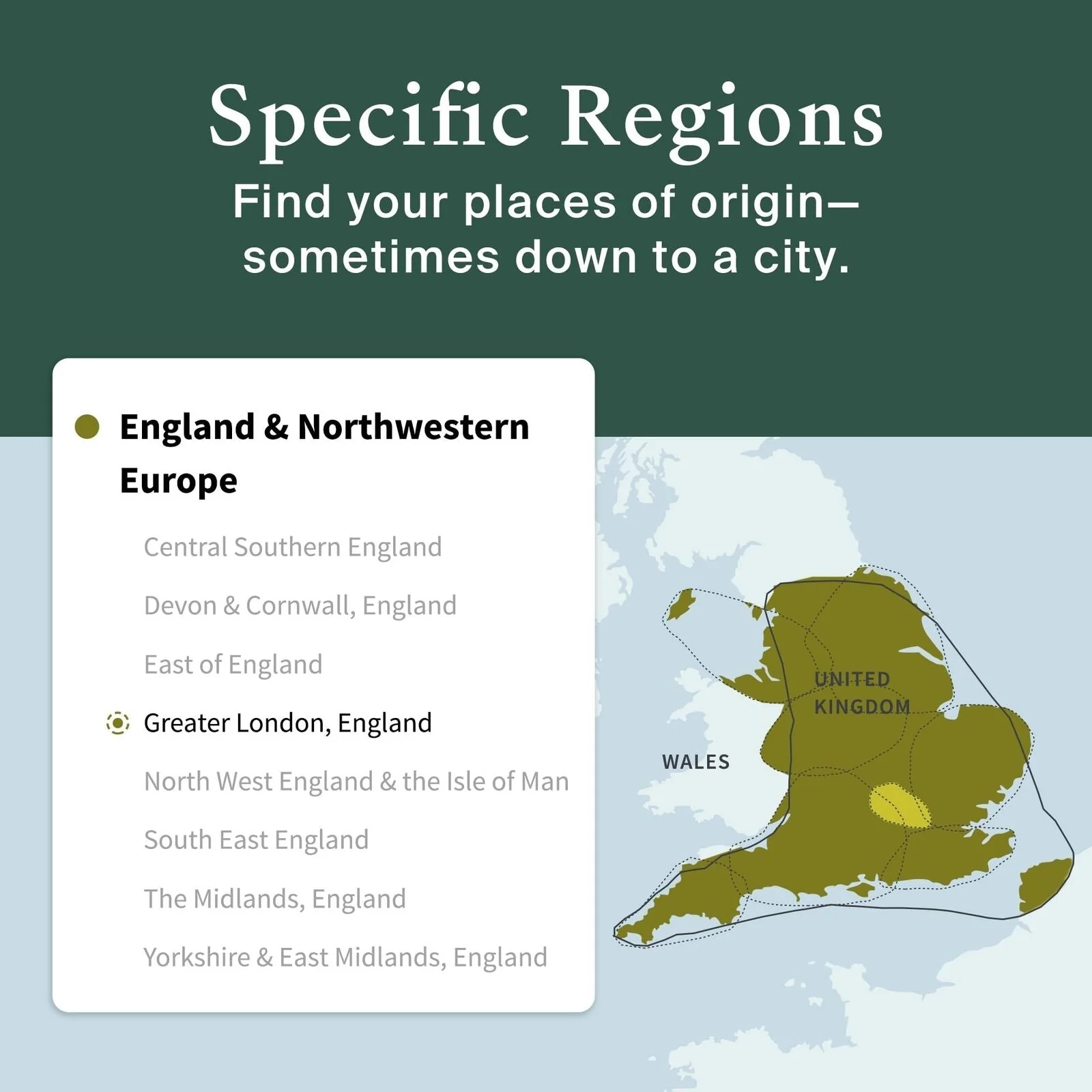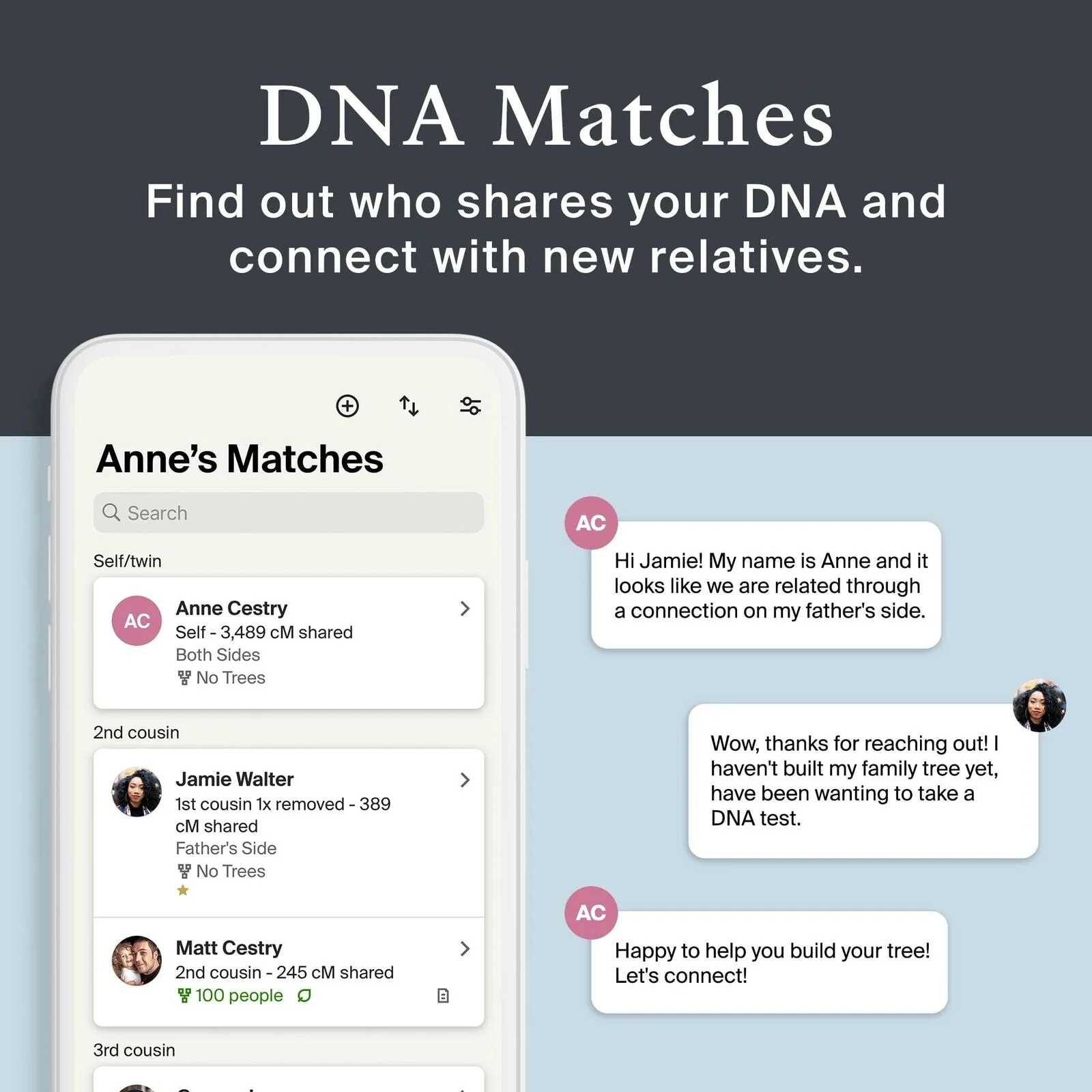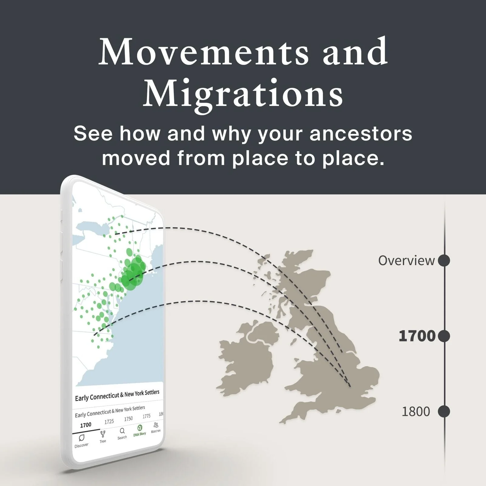 Desde sus orígenes en más de 2300 regiones globales hasta la mayor cantidad de conexiones con parientes vivos, ningún otro kit de prueba de ADN ofrece una experiencia tan única e interactiva como AncestryDNA.