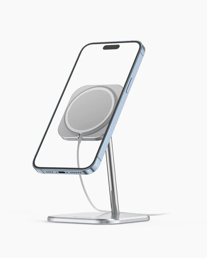 Este soporte para teléfono está hecho de aleación de aluminio de alta calidad, con una apariencia elegante, buena estabilidad y durabilidad. Es totalmente compatible con Apple iPhone14, iPhone14 plus, iphone14 pro, iphone14 pro max, iPhone 13 Mini, iPhone 13, iPhone 13 Pro, iPhone 13 Pro Max, iPhone 12, 12 Mini, 12 Pro, 12 Pro Max. Haz que la carga sea más cómoda. (Nota: este producto no incluye el cargador MagSafe).