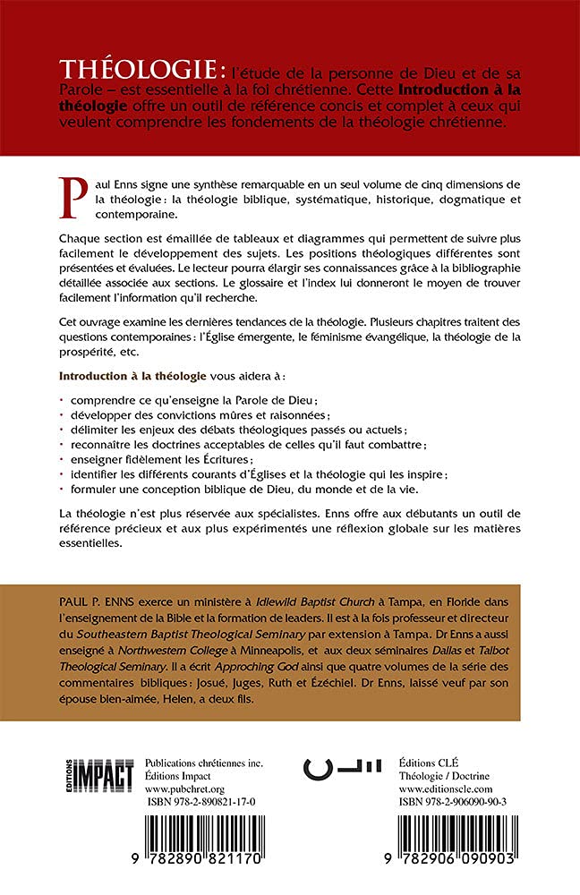 Esta Introducción a la Teología proporciona una herramienta de referencia concisa y completa para aquellos que desean comprender los fundamentos de la teología cristiana. Paul Enns ofrece una síntesis notable en un solo volumen de cinco dimensiones de la teología: teología bíblica, sistemática, histórica, dogmática y contemporánea. Cada sección está salpicada de tablas y diagramas que facilitan el seguimiento del desarrollo de los temas. Se presentan y evalúan diferentes posiciones teológicas. El lector podrá ampliar sus conocimientos gracias a la bibliografía detallada asociada a las secciones. El glosario y el índice le permitirán encontrar fácilmente la información que busca. Este trabajo examina las últimas tendencias en teología. Varios capítulos abordan cuestiones contemporáneas: la Iglesia emergente, el feminismo evangélico, la teología de la prosperidad, etc.