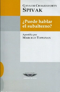 El autor trata de utilizar y de ir más allá de la deconstrucción derridiana. Derrida señala el peligro de apropiarse del otro por asimilación que conlleva la crítica radical. Derrida exhorta a la reescritura del impulso estructural utópico como ‘un volver delirante la voz interior que es la voz del otro en nosotros’. El subalterno no puede hablar. No existe mérito alguno en las listas de lavandería globales, donde la ‘mujer’ figura como una prenda piadosa. La mujer intelectual tiene, como intelectual, una tarea circunscripta que no puede rechazar con una rúbrica.