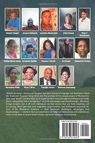 “ Viajes no contados: Historias de valentía y resiliencia de los sobrevivientes de los pueblos de Montserrat en medio de la diáspora desplazada ” Greenaway, Farrell & Cooper et al. profundiza en el viaje de la gente única de Montserrat, su nuevo “hogar”, y cómo intentan negociar su camino a través de una tierra que no es realmente suya .