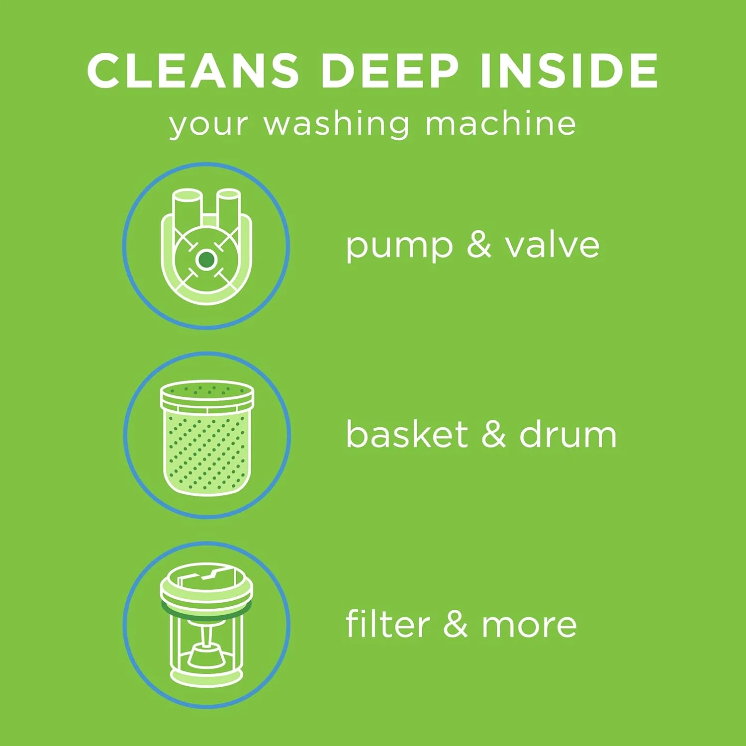 - Funciona con lavadoras de carga superior y frontal, incluidas HE (alta eficiencia)