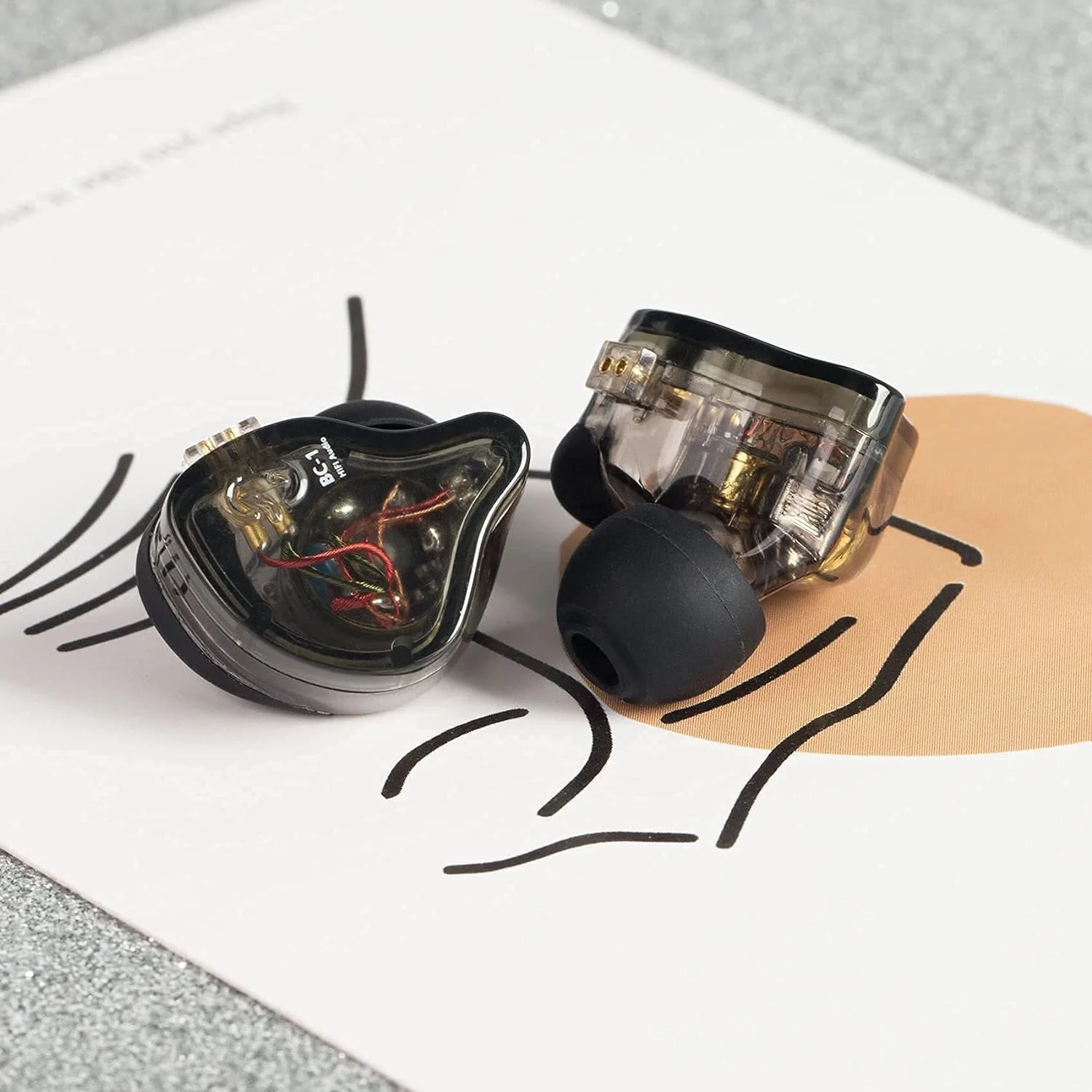 • Cavidad de Policarbonato y Almohadillas de Oído Diseñadas Exclusivamente para los Oídos: Cavidad de policarbonato cubierta con barniz ultravioleta, lo que hace que los auriculares se vean elegantes. Las almohadillas de los oídos adoptan material elastómero termoplástico, que es cómodo y suave de llevar. El diseño de ranura en la tapa del oído aporta más sonido estéreo, mejorando los detalles y la etapa de sonido. Los tubos cortos de guía de sonido reducen la pérdida de sonido. La aleta de elastómero termoplástico suave y respetuosa con el medio ambiente se añade a la parte trasera de la cavidad, proporcionando una experiencia más cómoda, estable y ligera.