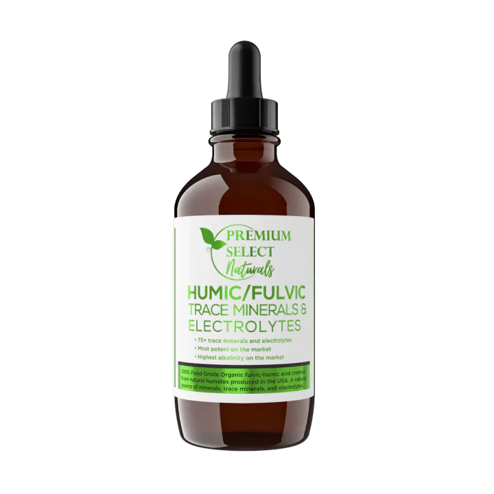 El ácido húmico y el ácido fúlvico utilizados en los electrolitos y minerales traza húmicos/fúlvicos de Premium Select Naturals es un ácido fúlvico-húmico líquido extraído orgánicamente de humatos naturales crudos. Estos humatos provienen de depósitos prístinos en el oeste de Estados Unidos que tienen alrededor de 80 millones de años. No se utilizan disolventes químicos en ninguna etapa del proceso.
