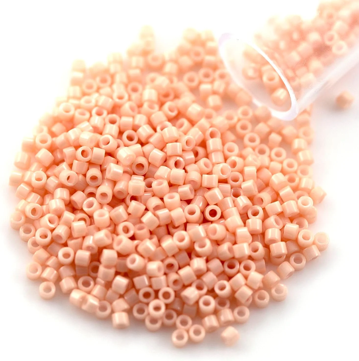 - Forma: cilindro Delica – Color: rosa melocotón claro esmaltado brillo opaco