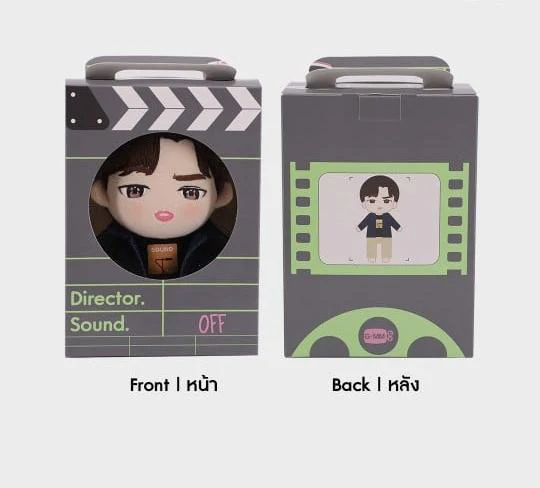 Muñeco de peluche OFF de 15 cm de la colección de camisetas (sonido) de Theory of Love, con una moderna chaqueta vaquera y pantalones de color crema, nombre “off” bordado en la espalda, fabricado con una tela suave y acogedora, empaquetado en una caja gris especialmente diseñada con una pizarra de película en la parte delantera y un disco de cinta de película en la parte trasera