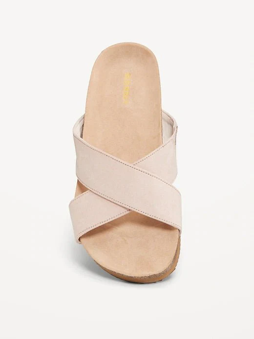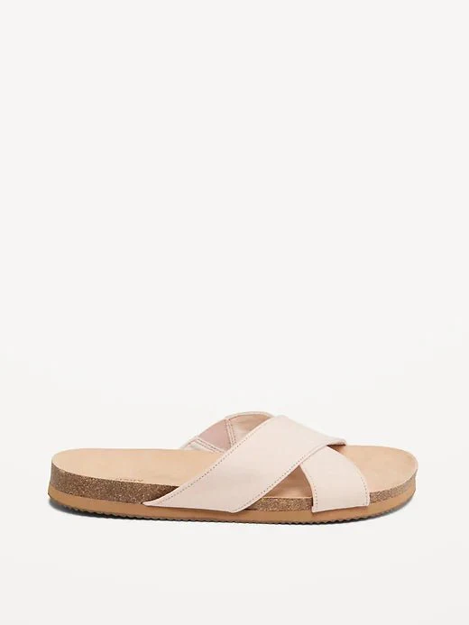 Completa tu look veraniego con las sandalias de corcho con tiras cruzadas de Old Navy. Diseñadas para brindar estilo y comodidad, cuentan con una suela ligera de corcho y tiras cruzadas que aseguran un ajuste perfecto. Ideales para combinar con cualquier atuendo, estas sandalias son un básico imprescindible para los días soleados.
