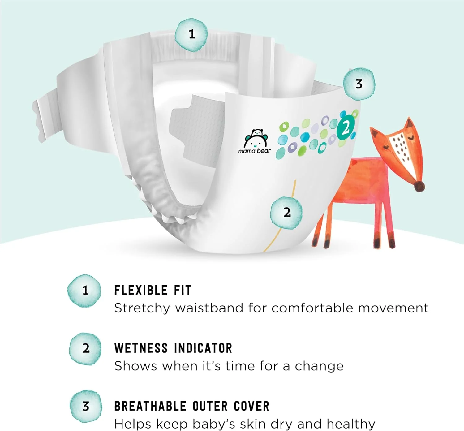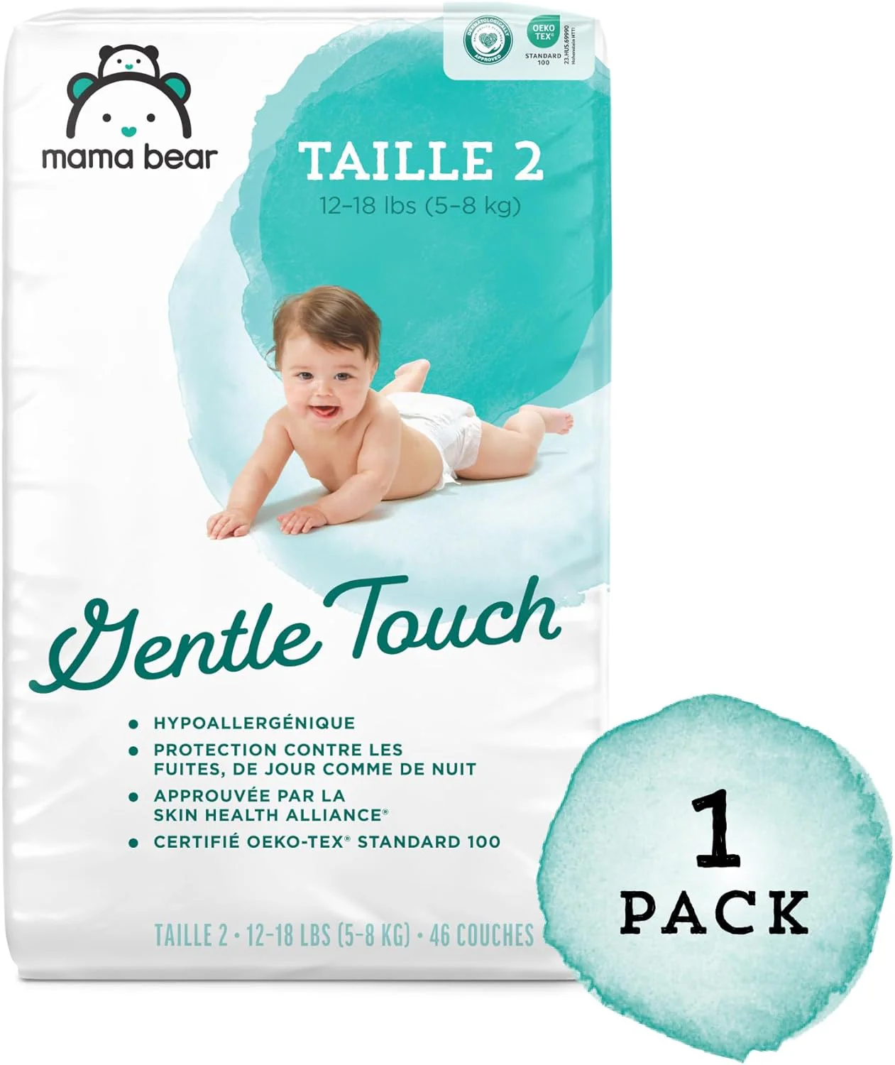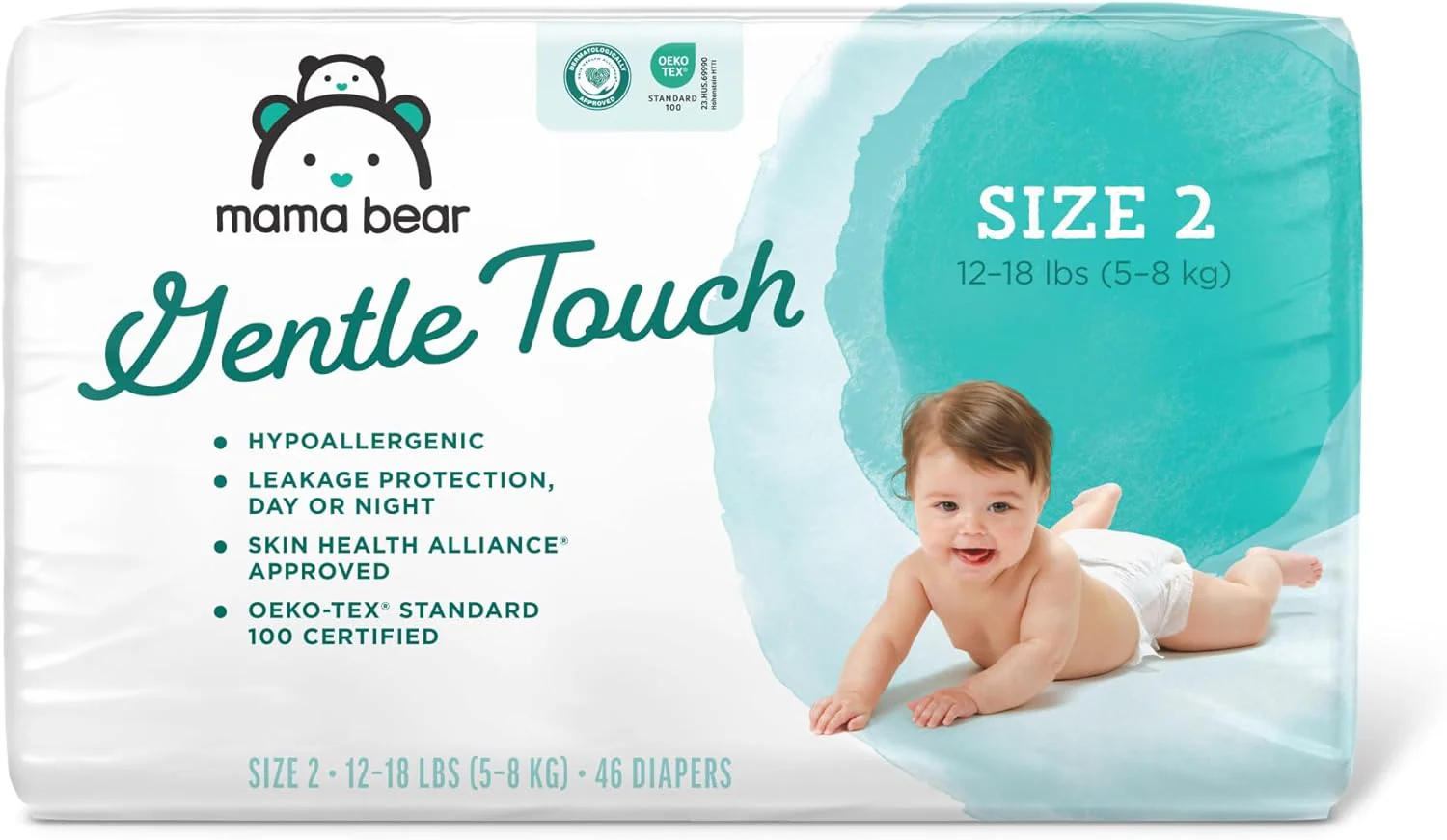 - EN LA CAJA: 46 pañales Mama Bear Gentle Touch para bebés; tamaño 2