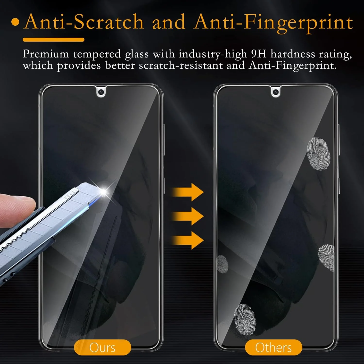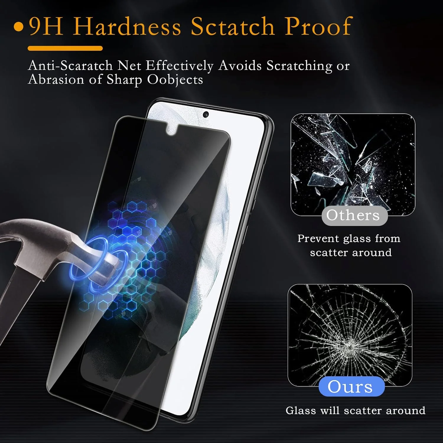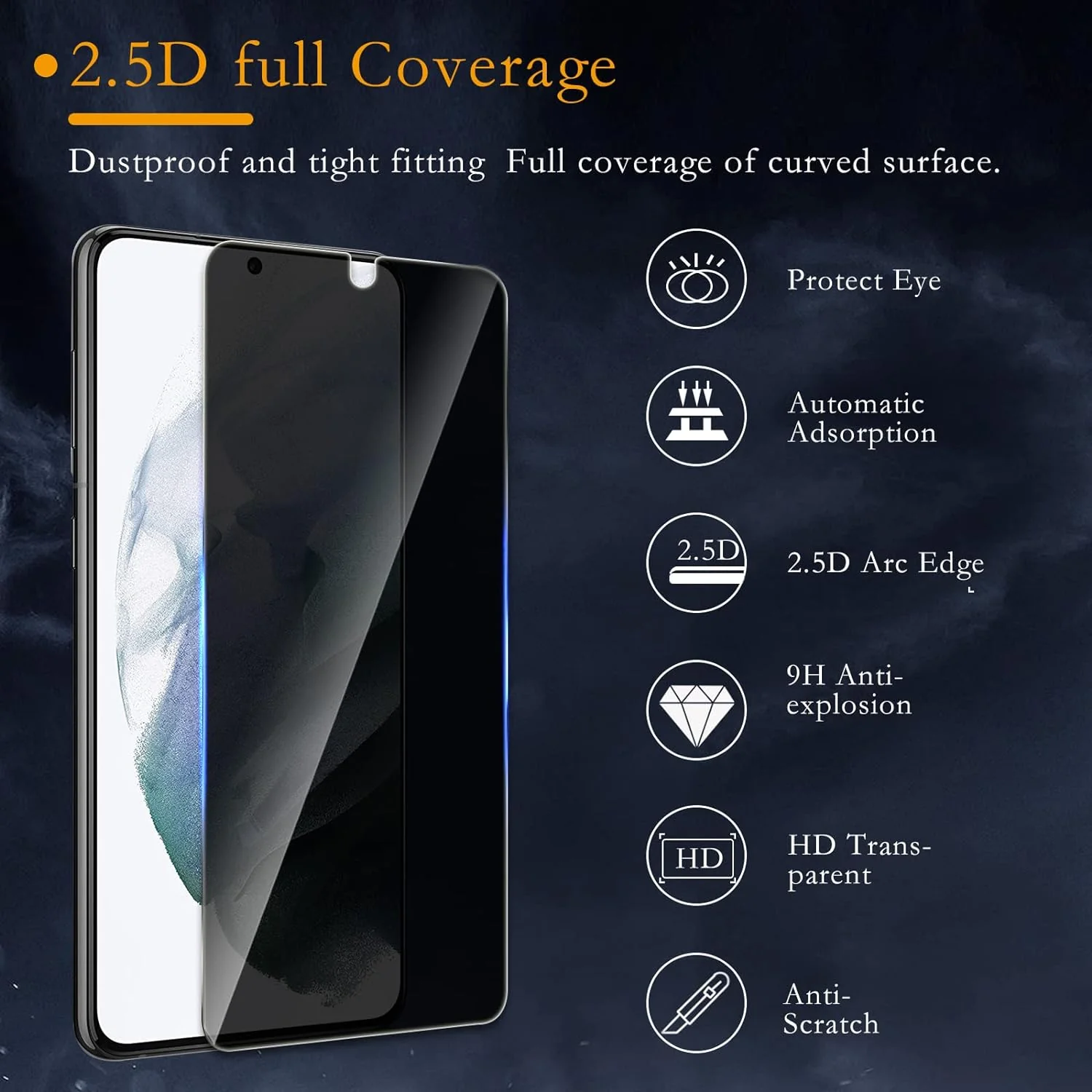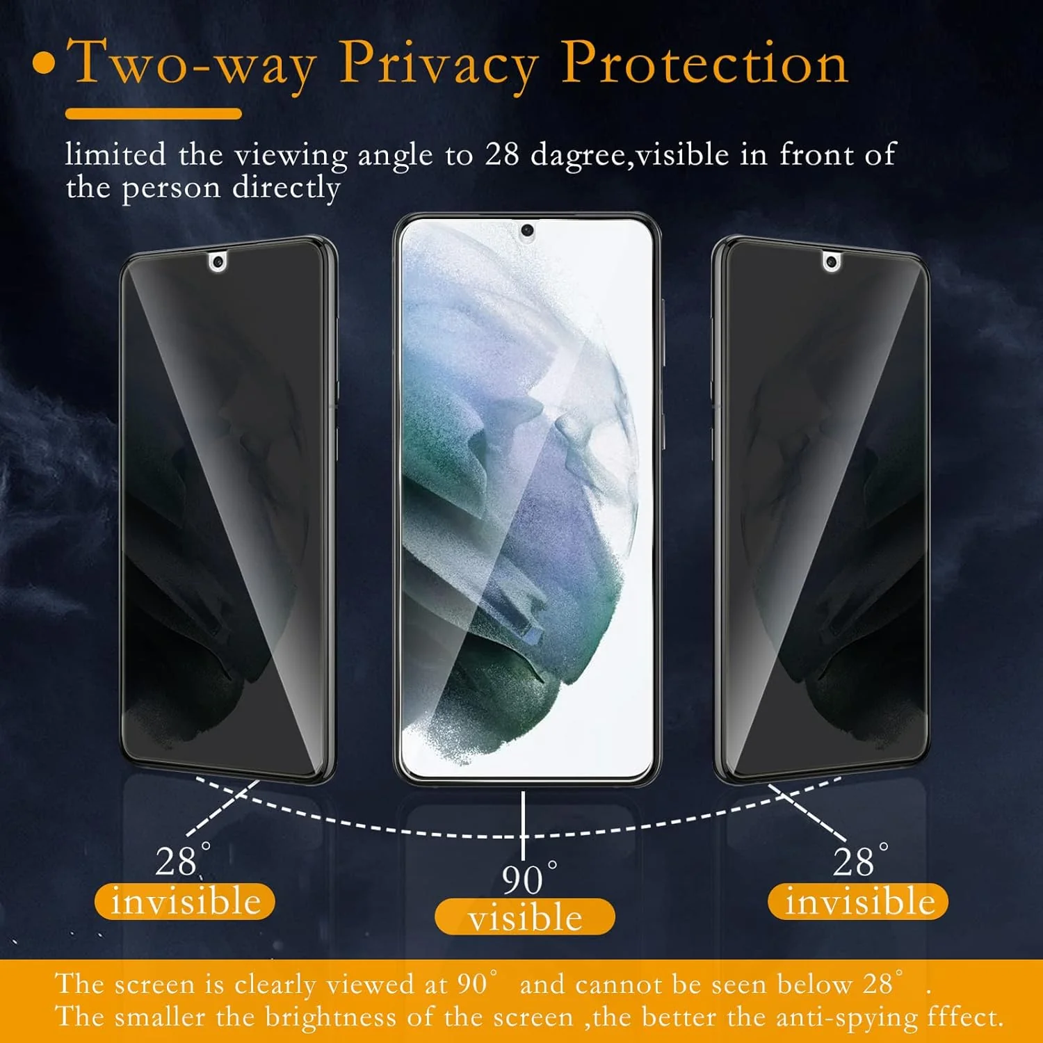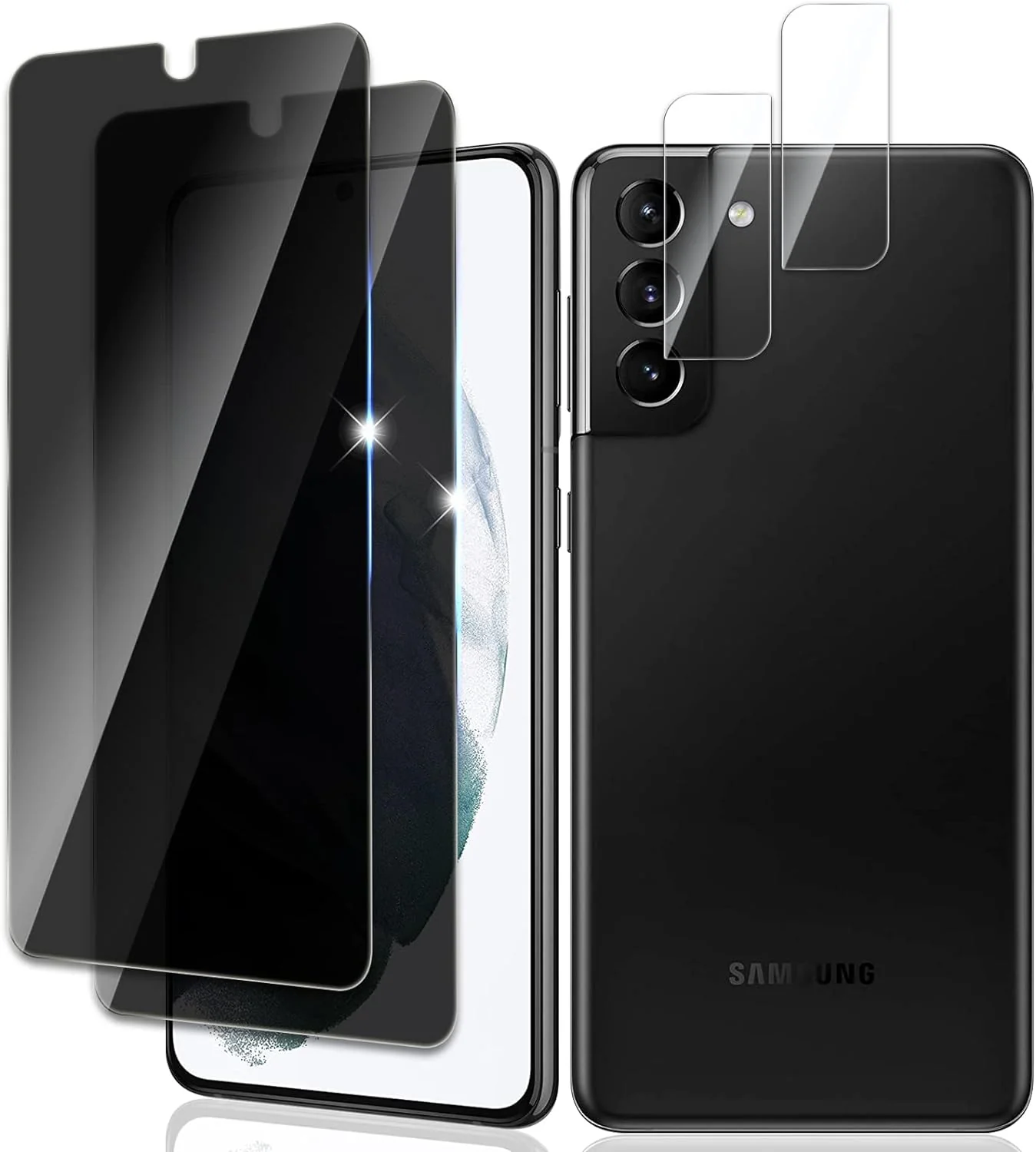 - Modelo compatible: el protector de pantalla y el protector de lente de cámara son compatibles con Samsung Galaxy S21 Plus, comprueba el modelo de teléfono antes de comprar. El producto contiene 2 paquetes de protectores de pantalla de vidrio templado de privacidad y 2 paquetes de protectores de lente de cámara. Protege tu teléfono perfectamente en todos los aspectos.