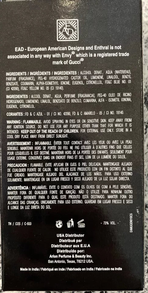 Perfume EAD Enthral Comparado con Envy by Gucci Spray Agua de colonia, 75ml