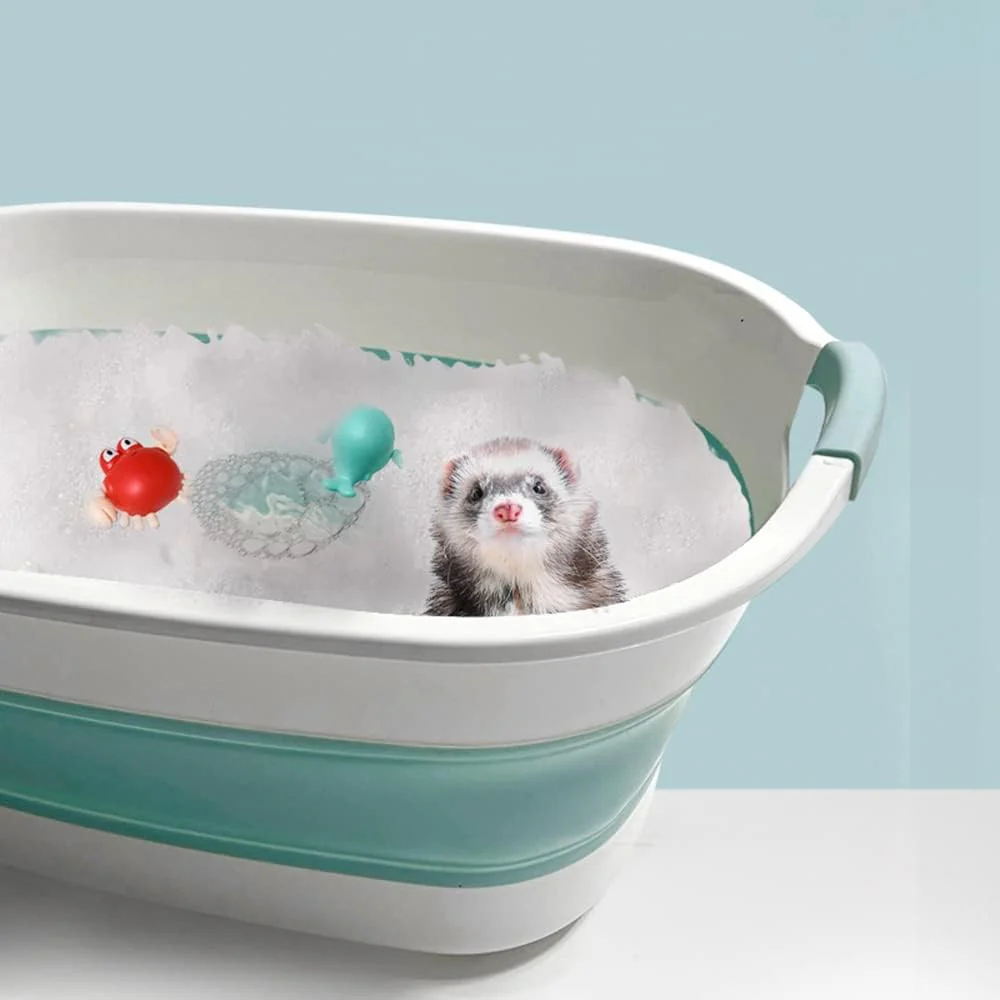 - Bañera para hurones portátil y práctica: fácil de transportar y guardar, se pliega y expande rápidamente; esta práctica bañera es una buena opción para viajeros y campistas que tienen mascotas pequeñas. Puede bañar a su mascota durante el viaje y dejar que disfrute de un momento feliz. Facilita la hora del baño.