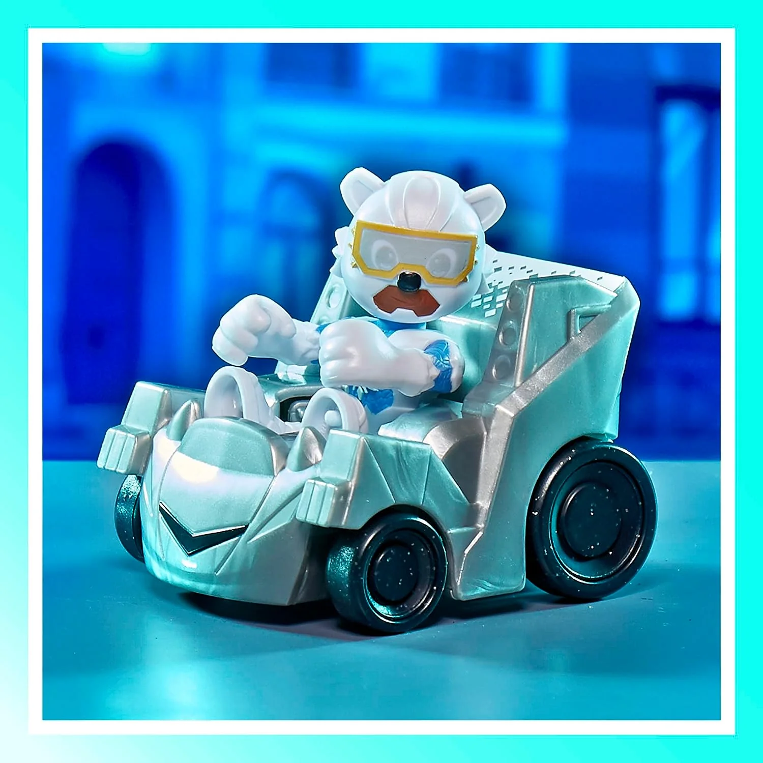 • FIGURA ESPECIAL DE ICE CUB Y VEHÍCULO: ¡Témpanos infinitos! Los niños pueden imaginarse corriendo a toda velocidad por Ice World con la figura de acción especial y el vehículo Ice Cub.