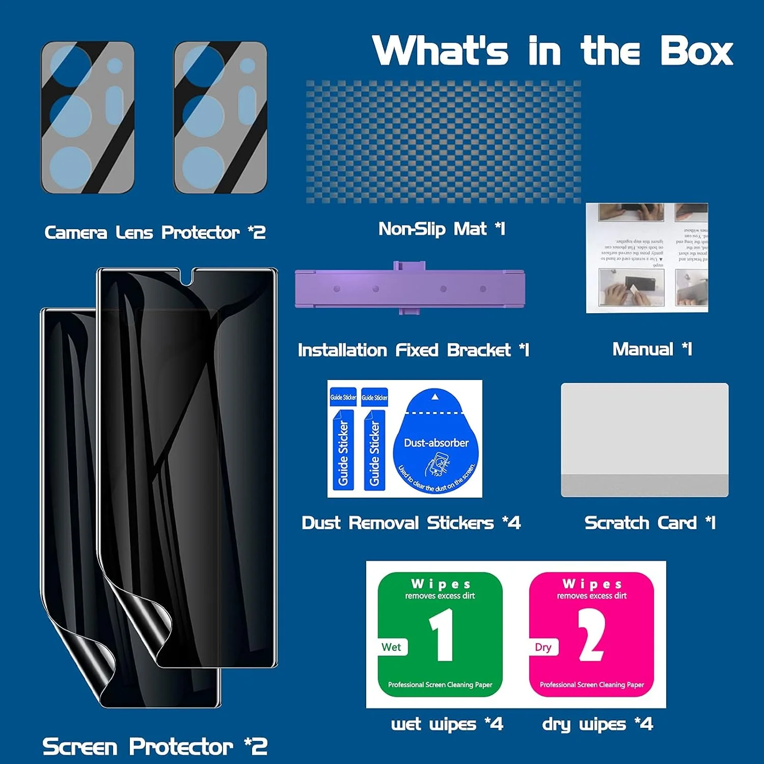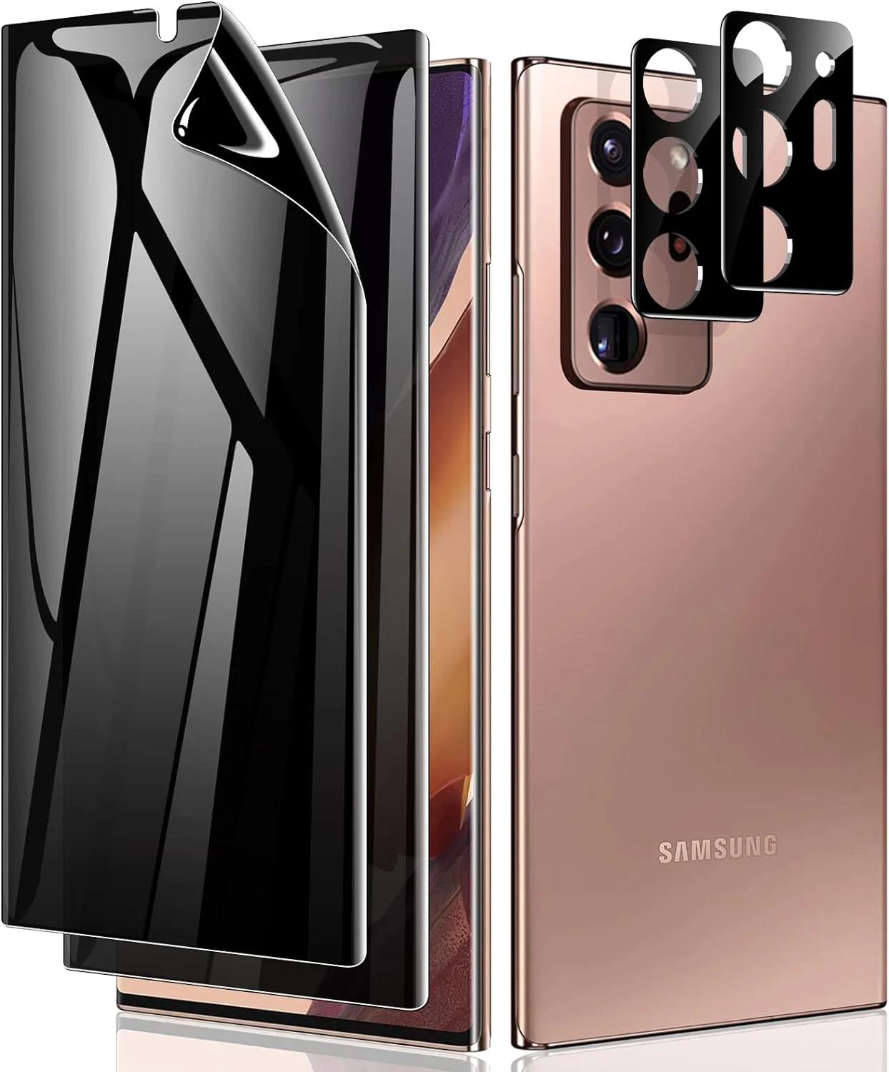 - [Paquete de 4] – 2 protectores de pantalla de privacidad ultra flexibles para Samsung Galaxy Note 20 + 2 protectores de cristal para cámara Samsung Note 20 Ultra. Son compatibles con fundas, y una funda proporciona la máxima protección para su teléfono. (! ! ! Recuerde la configuración – Sensibilidad al tacto – y active la Sensibilidad al tacto)