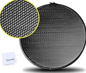 - Rejilla de panal de 20°/30°/40°/60°, pueden decorar mucho la luz de la pantalla y proporcionar un excelente efecto de sombra. Cambia la forma y la intensidad de la salida de luz de los cabezales del flash. El uso de una rejilla da como resultado un pequeño círculo de luz cuando se coloca en el frente de la fuente de luz.