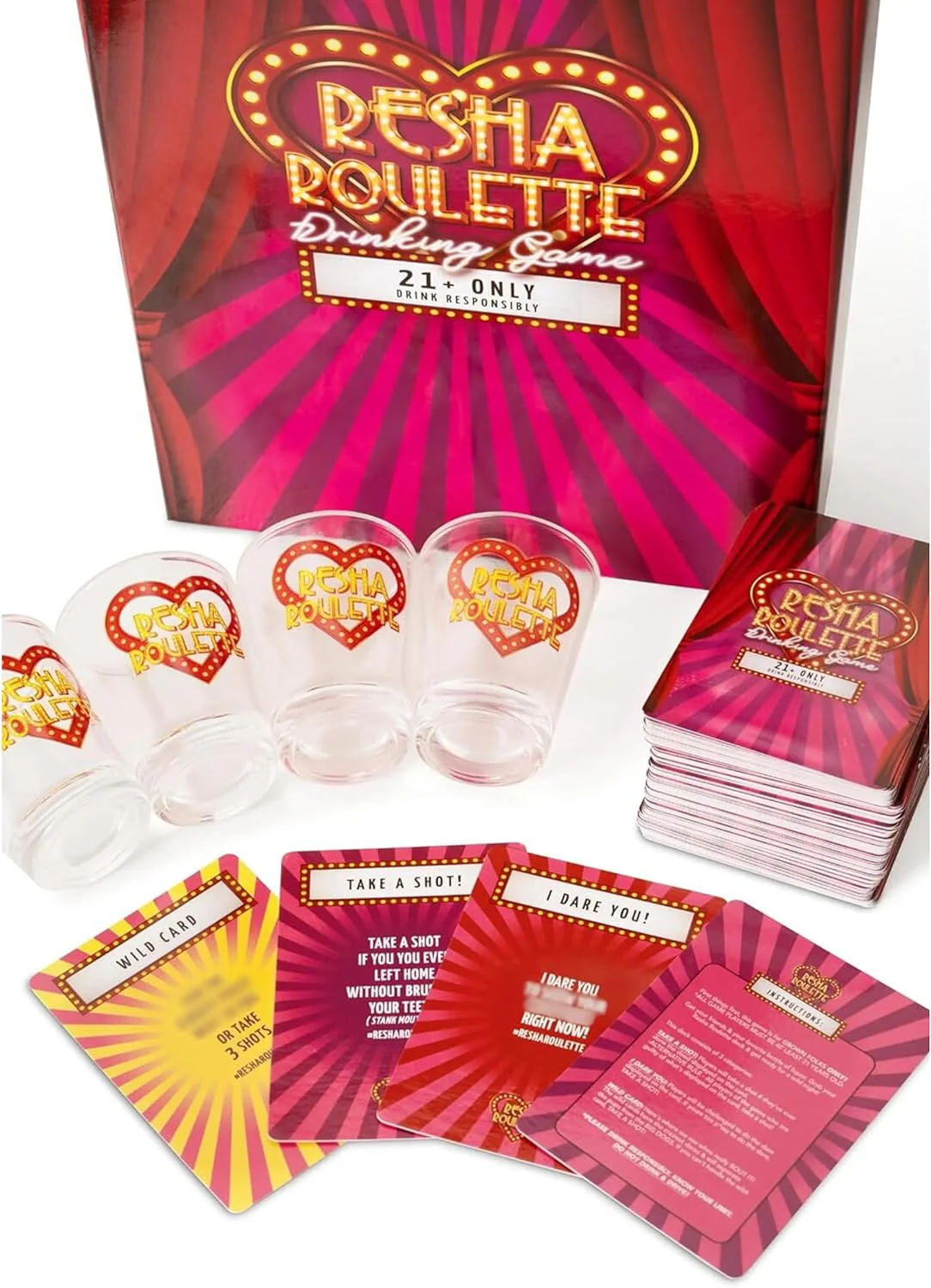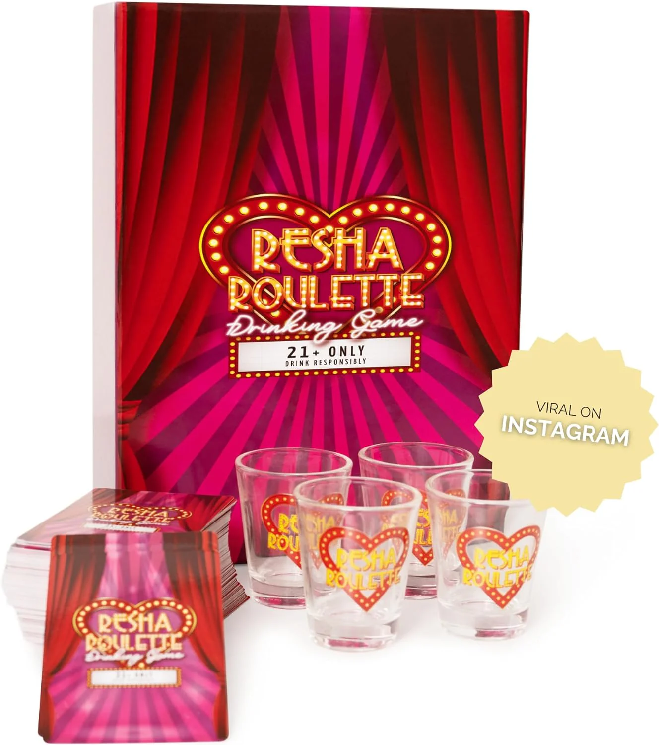 - El juego incluye: 4 vasos de chupito de ruleta Resha + una baraja de 120 cartas de ruleta Resha